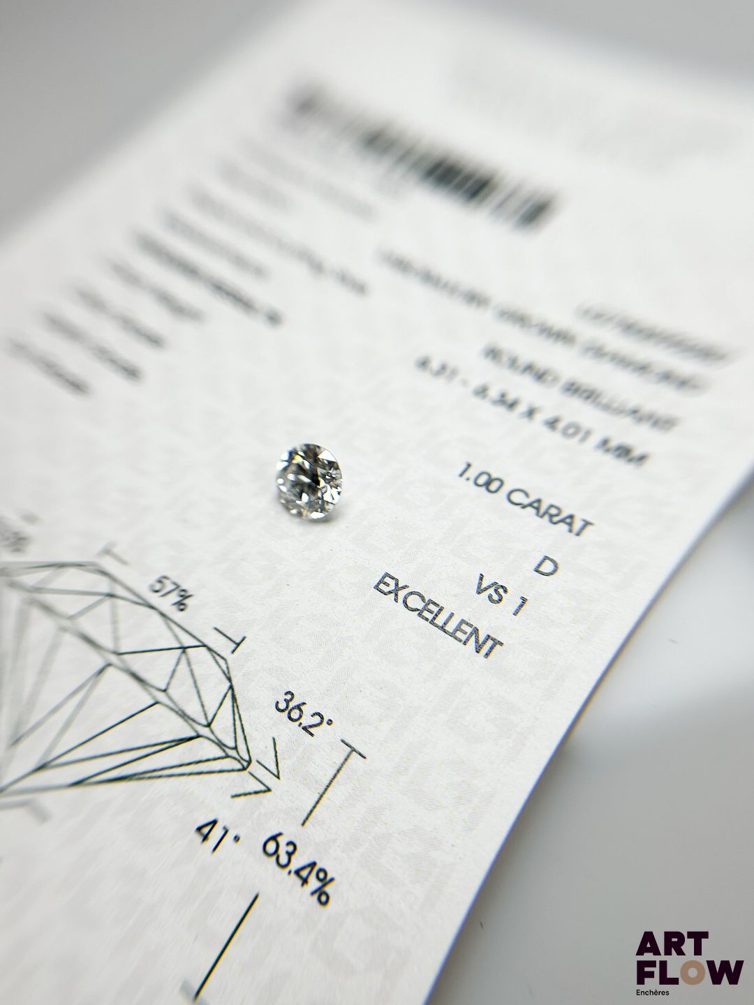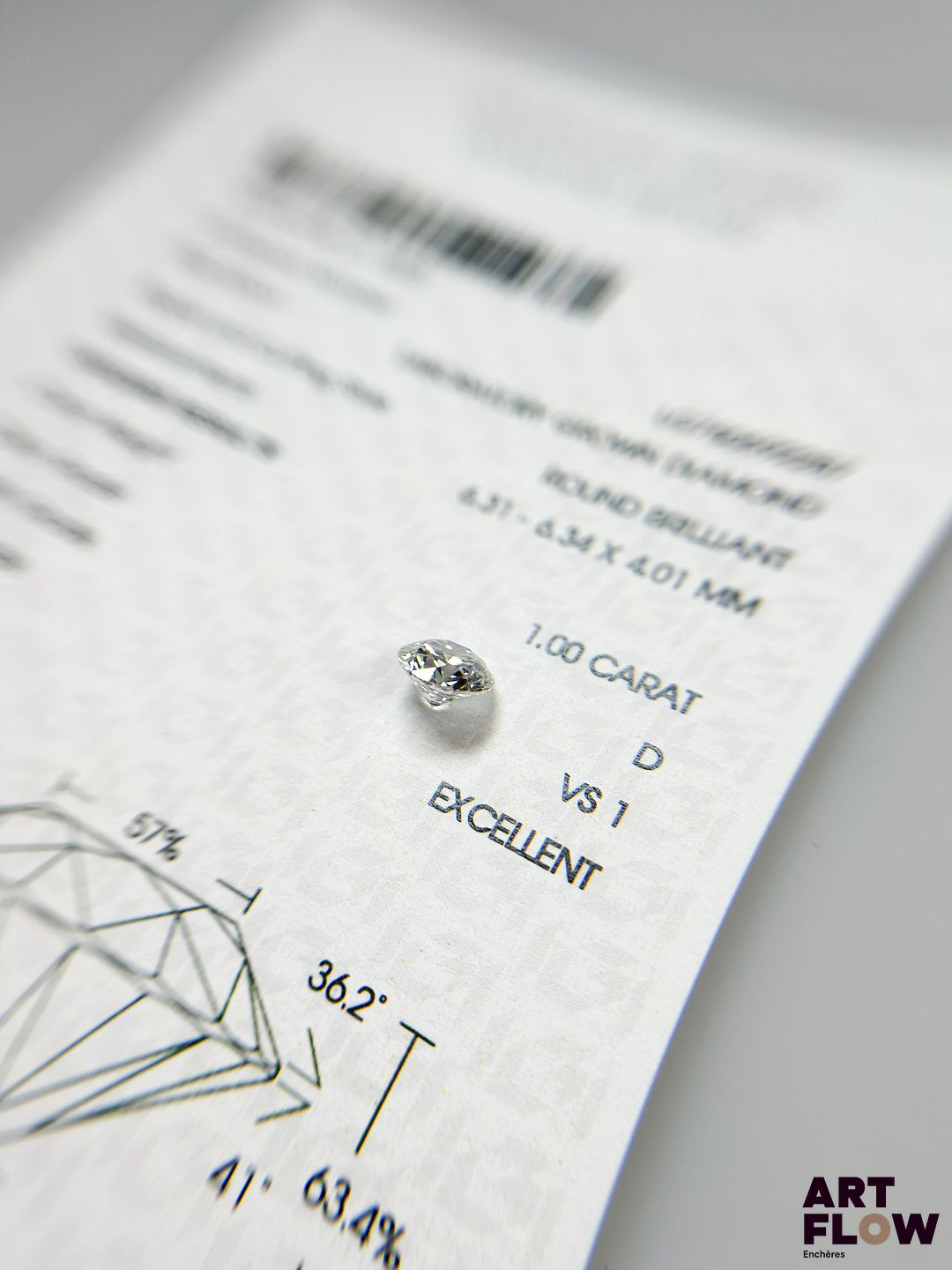 Diamant de synthèse de 1 carats de forme ronde, avec certificat précisant : D, VS1