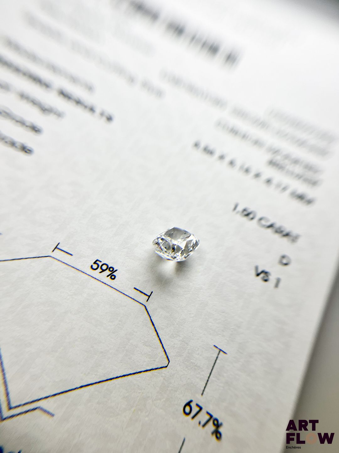 Diamant de synthèse de 1,5 carats de forme coussin MODIFIED, avec certificat précisant : D, VS1