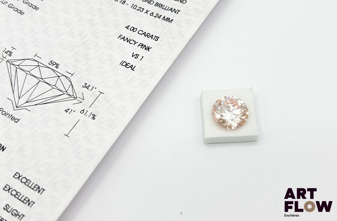 Diamant de synthèse de forme ronde de 4,00 carats. Accompagné d’un certificat de laboratoire de l’IGI (international gemological Institute) précisant : Fancy pink, VS 1