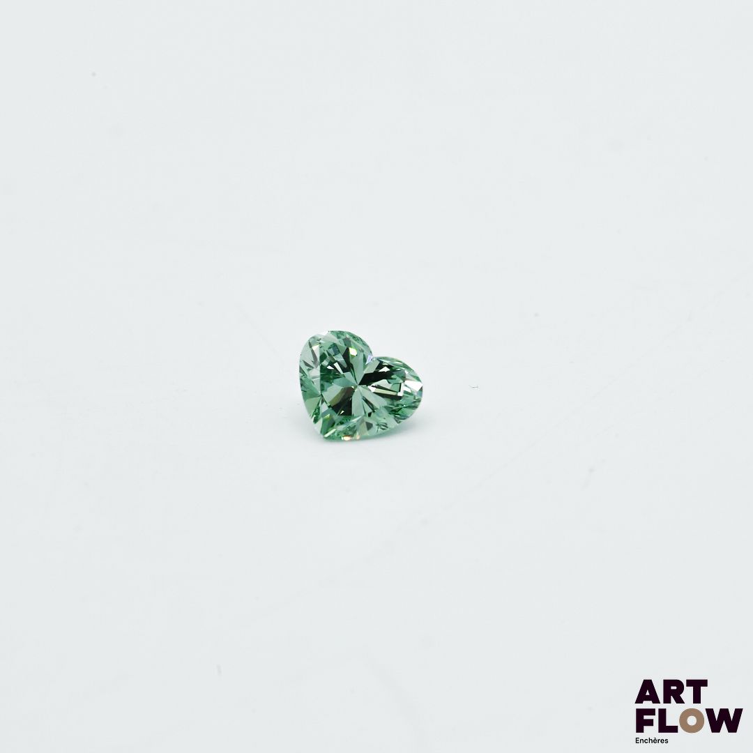 Diamant de synthèse (lab-grown diamond) de forme coeur 1 carats, accompagné d’un certificat de laboratoire (IGI) indiquant : Fancy Vivid Green, VS1