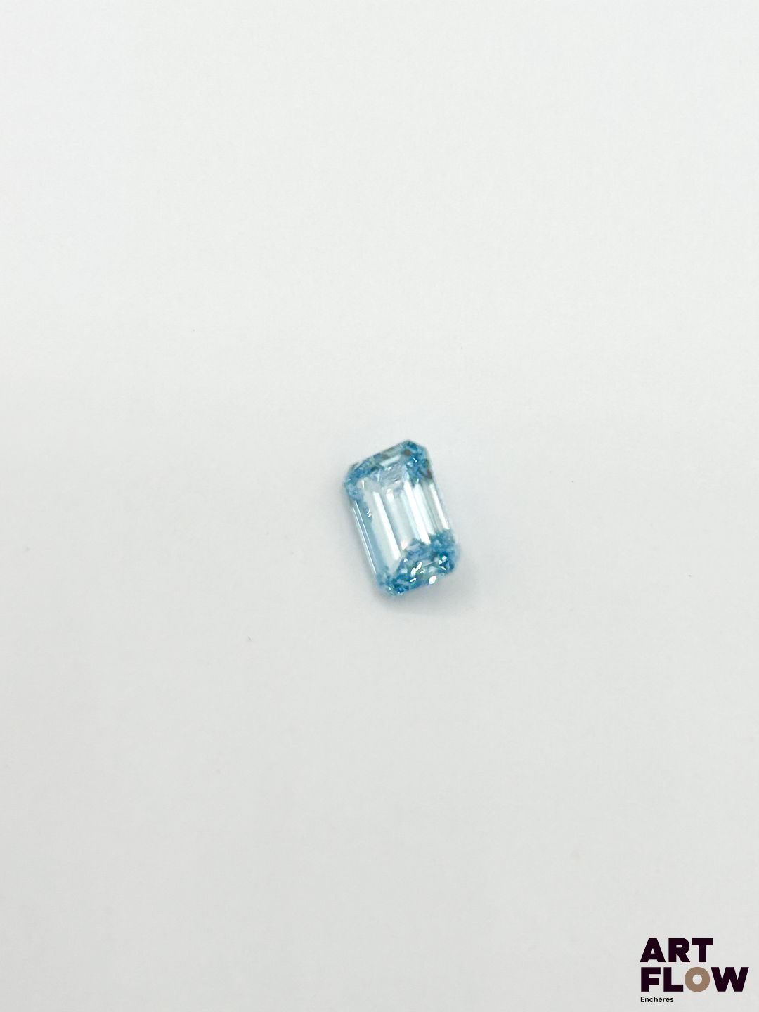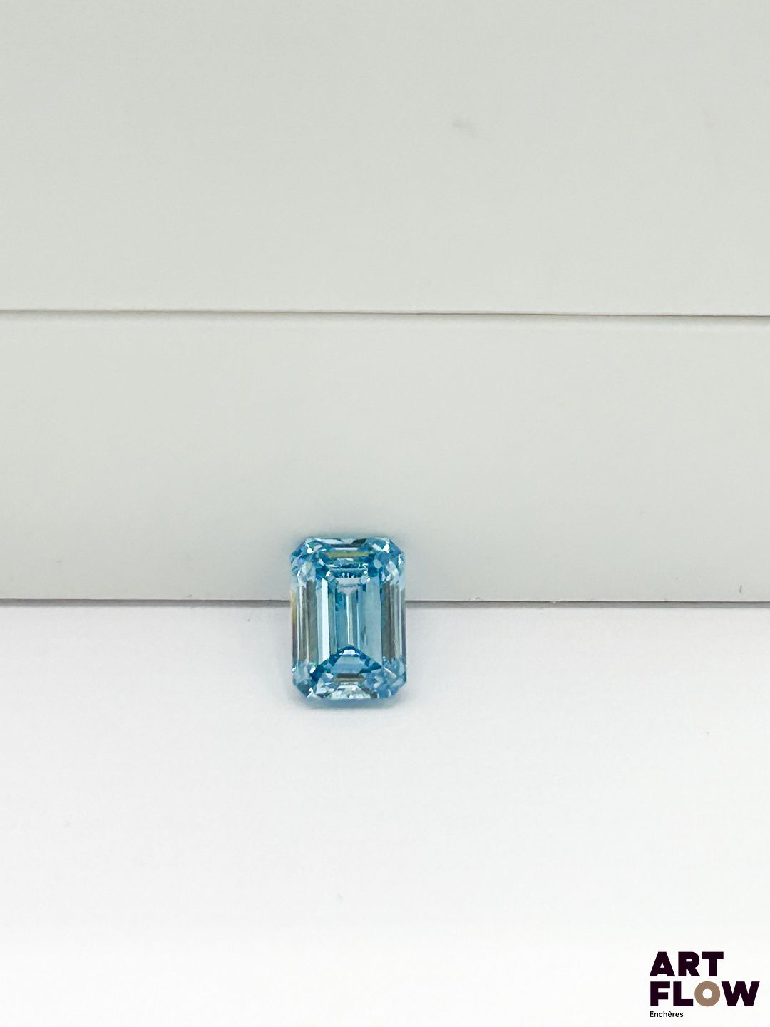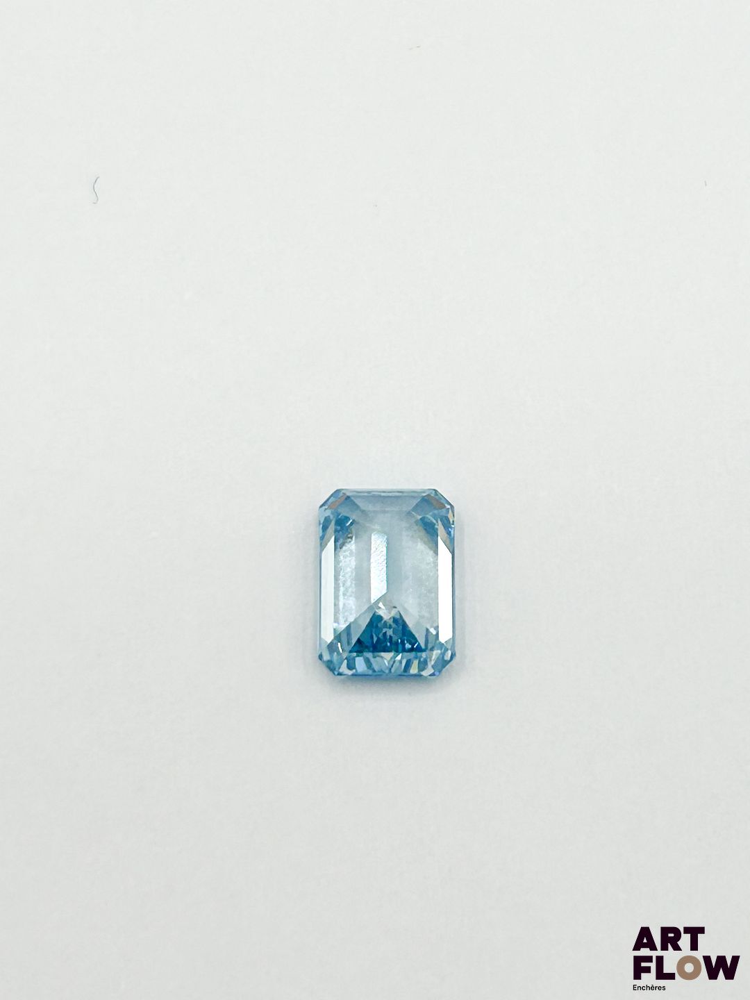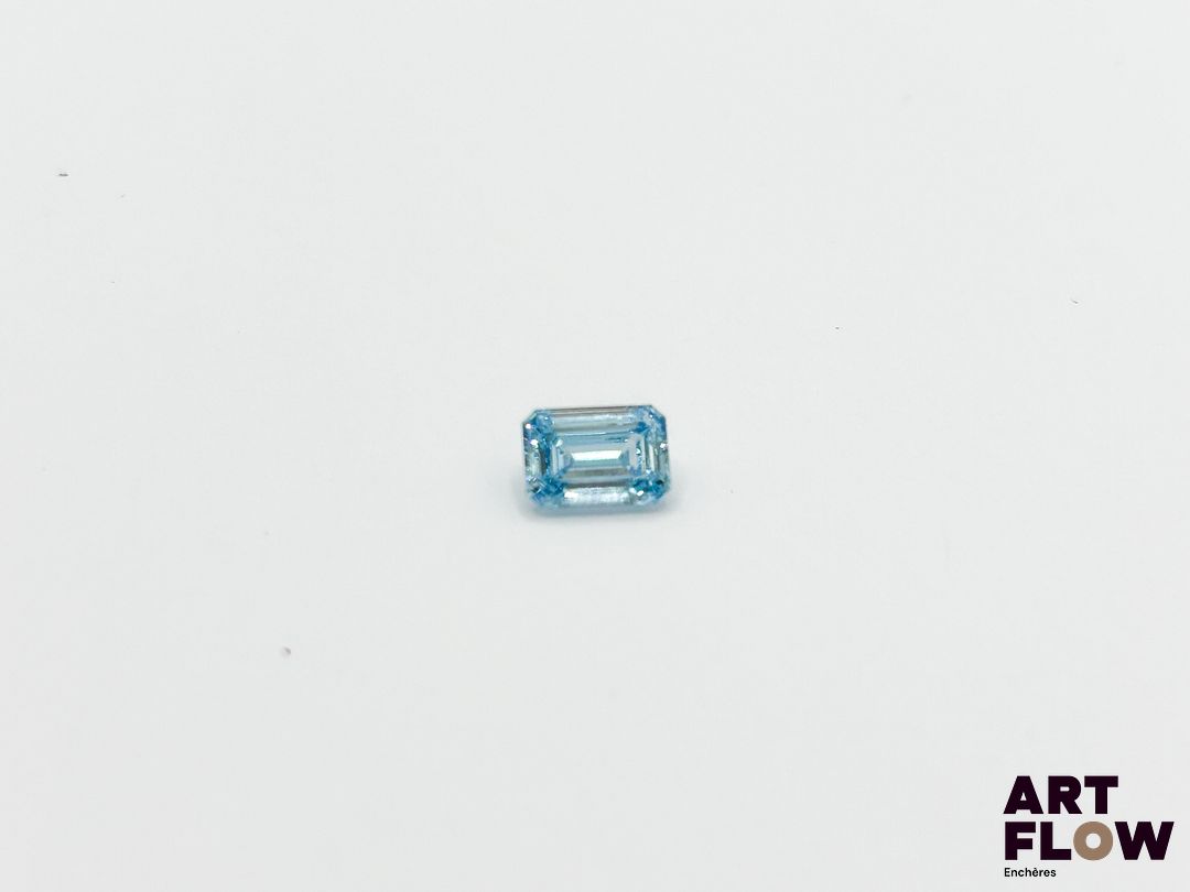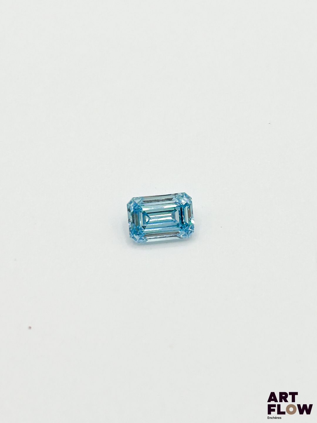 Diamant de synthèse taille émeraude de 1,56 carat. Accompagné d’un certificat de laboratoire de l’IGI (international gemological Institute) précisant : Fancy vivid blue, VS 1