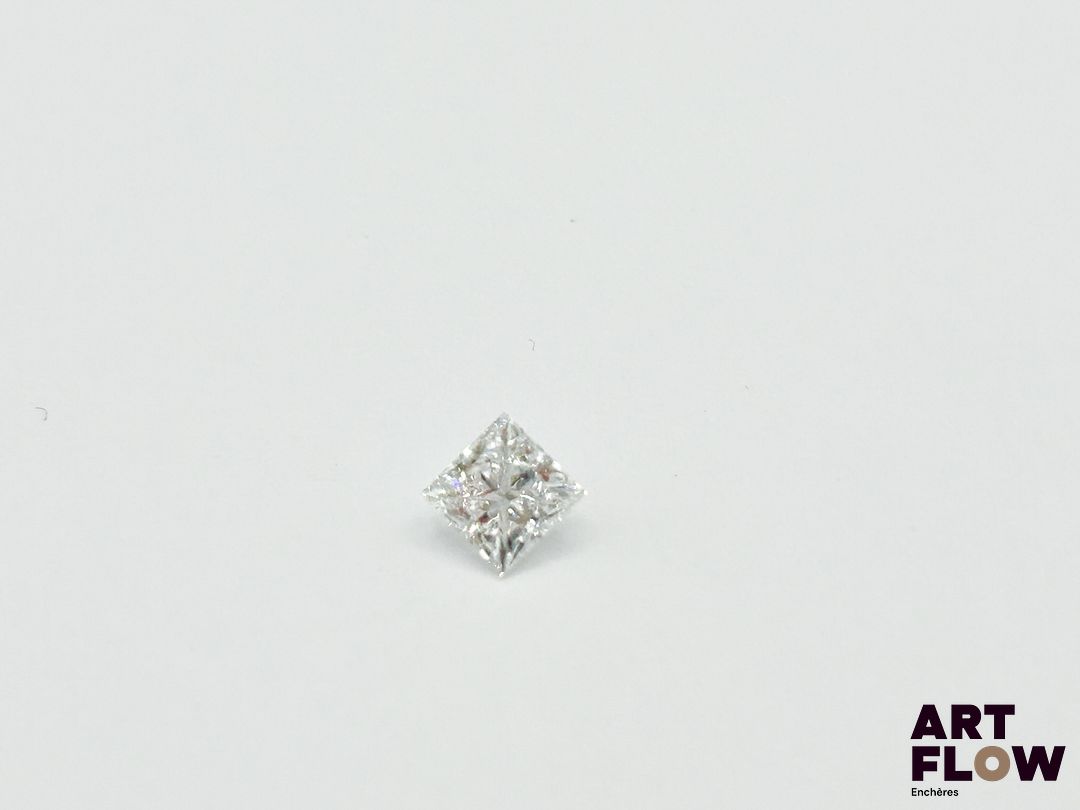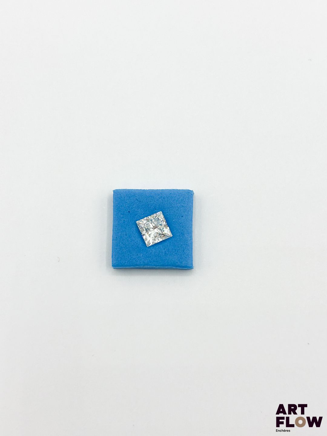 Diamant de synthèse taille princesse de 0,90 carat. Accompagné d’un certificat de laboratoire de l’IGI (international gemological Institute) précisant : D, VVS 2