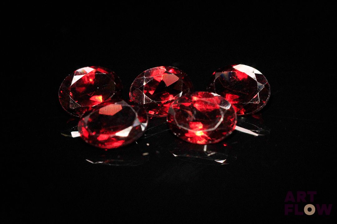 Cinq grenats ovales. Probablement Mozambique. 7.36 cts. Dims. moy.: 8.0mm x 6.0mm