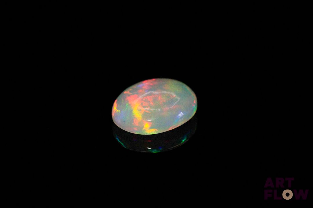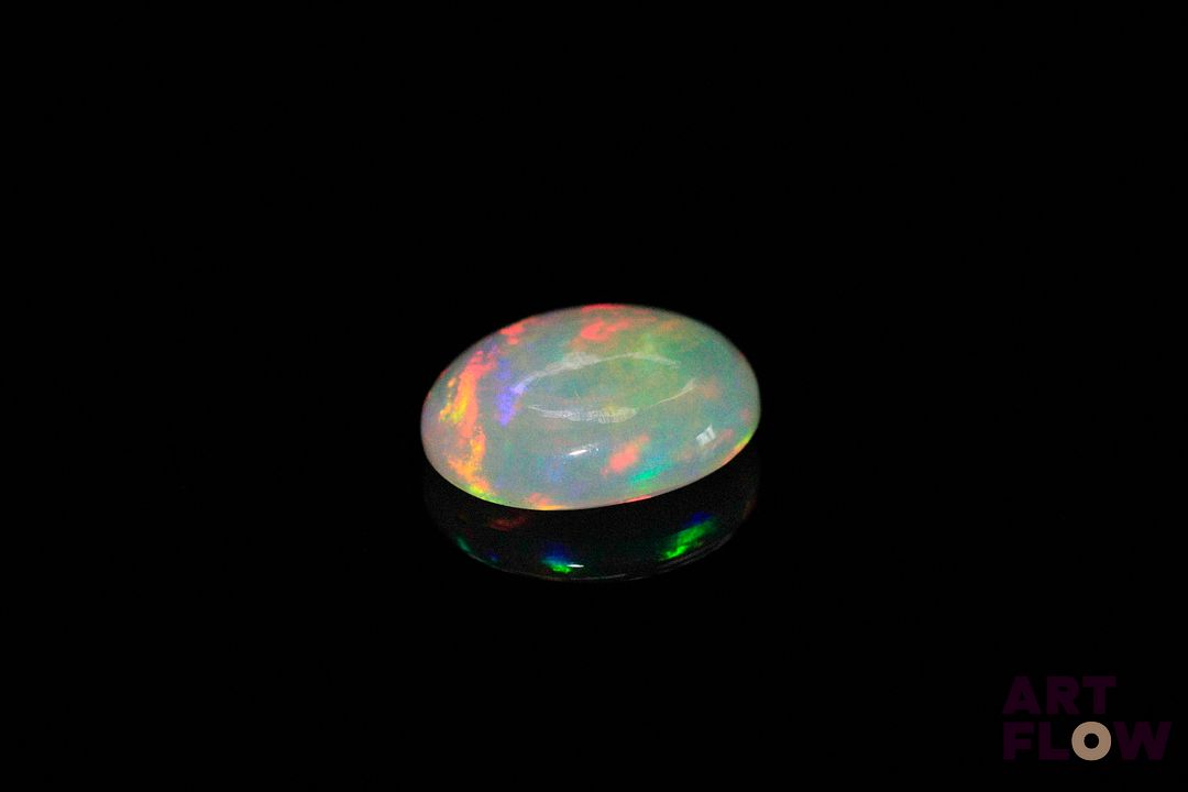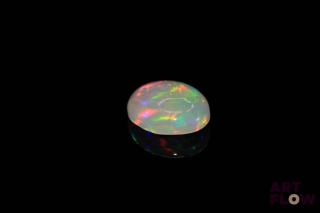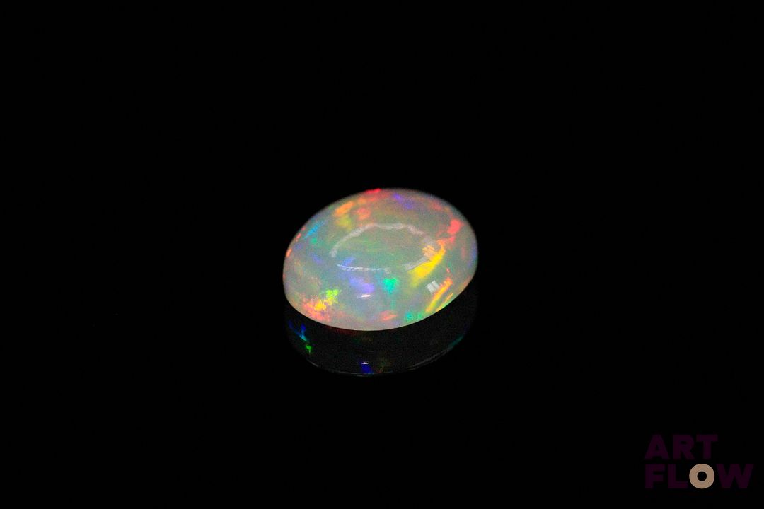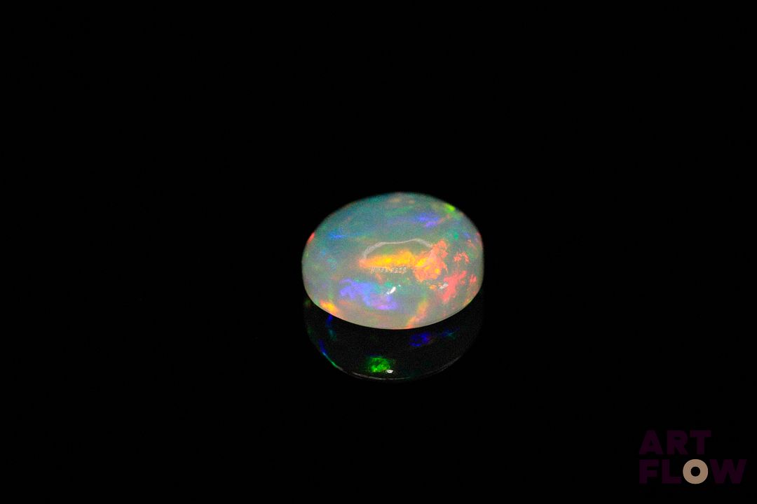 Opale blanche cabochon ovale. Beaux éclats de couleur. 2.57 cts. 12.0mm x 10.0mm