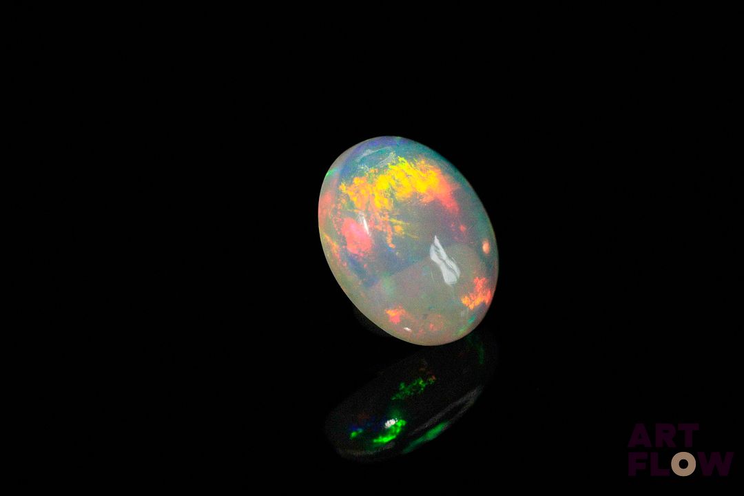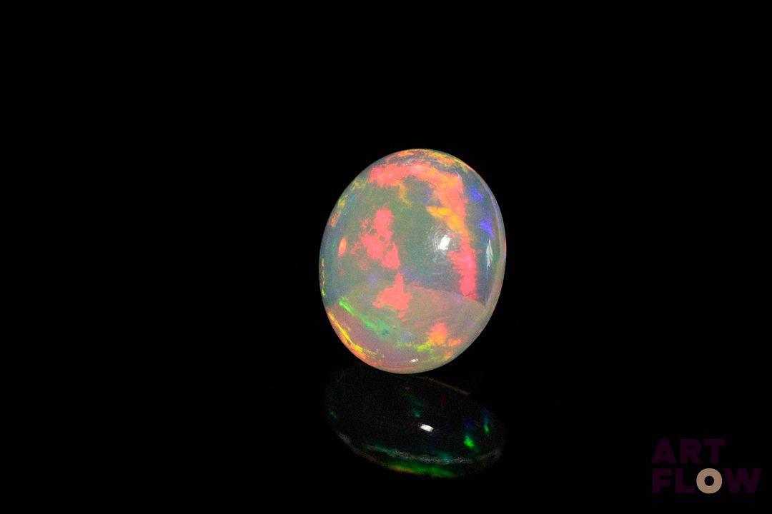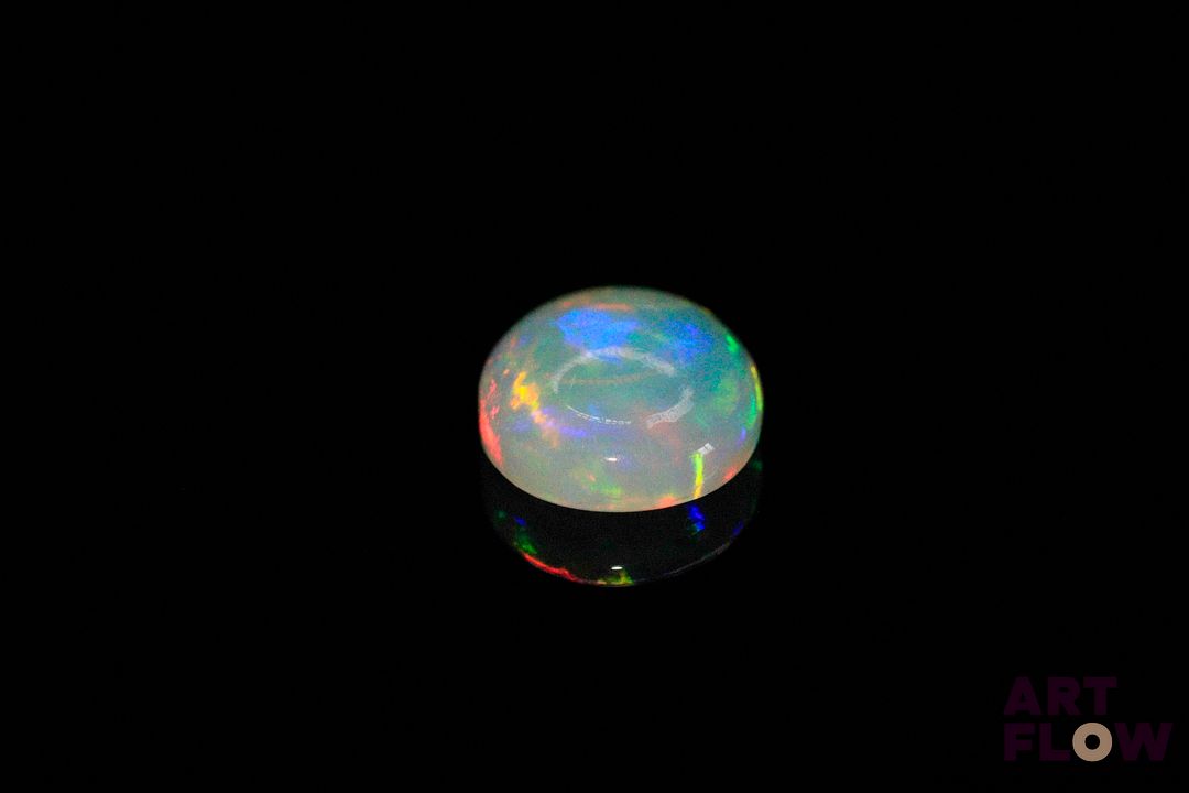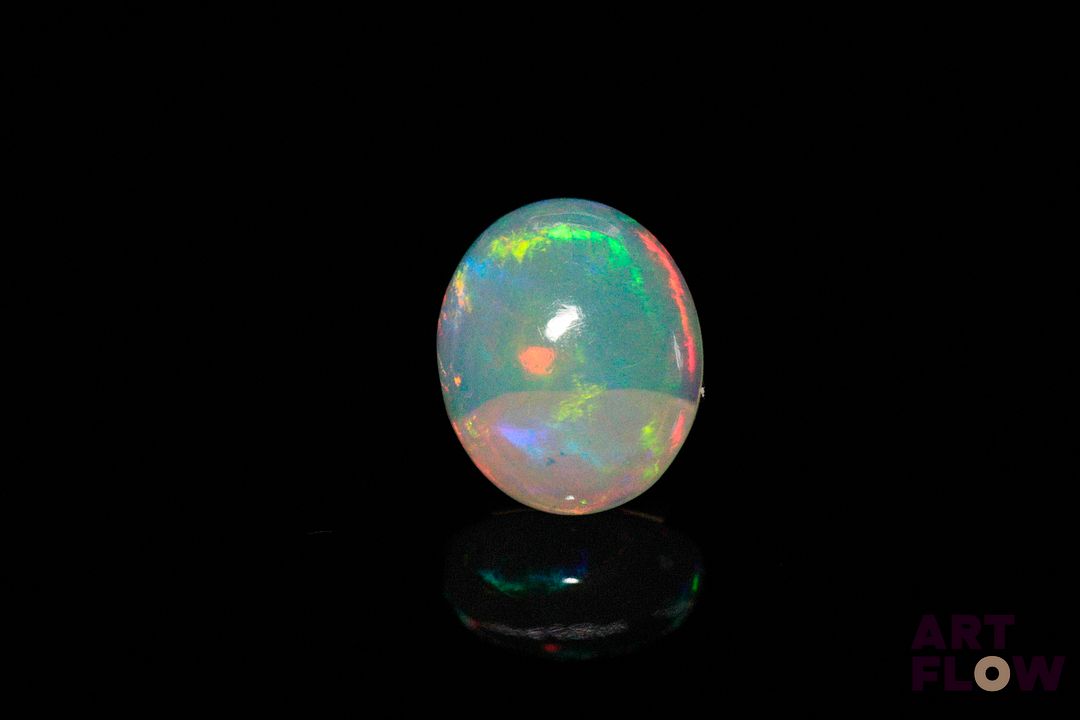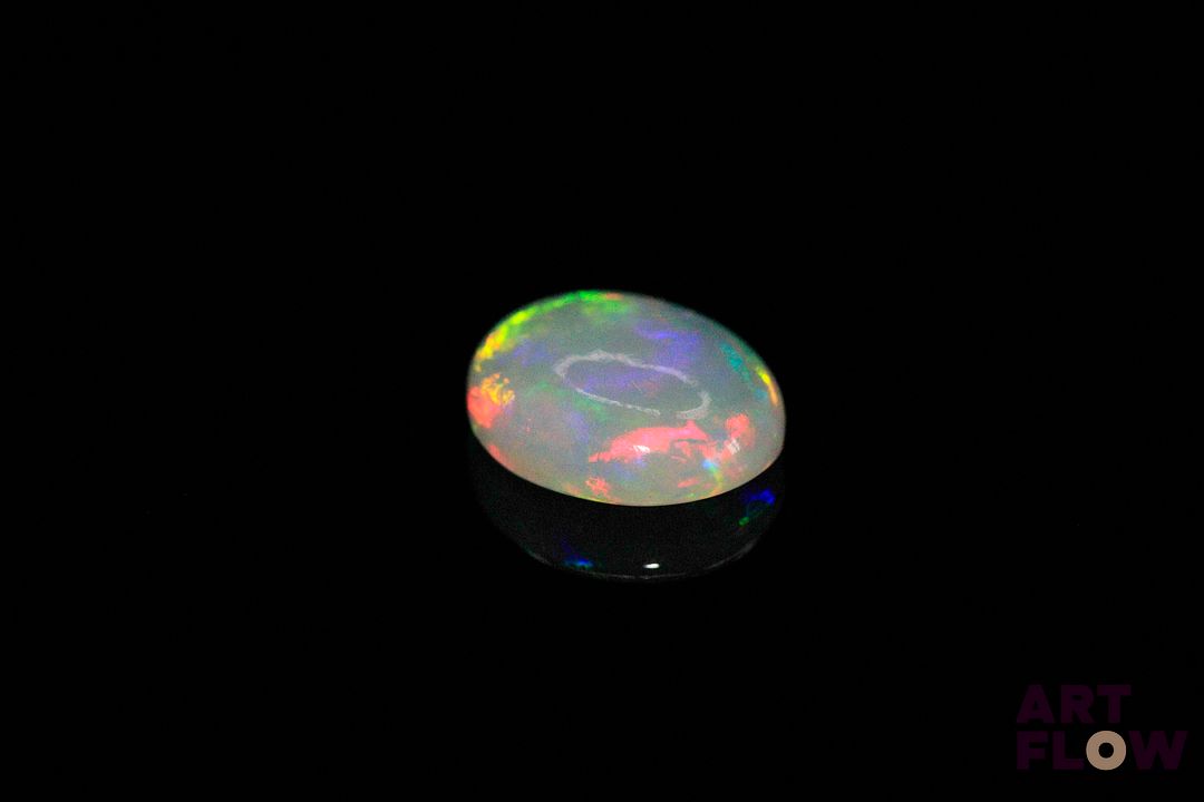 Opale blanche cabochon ovale. Beaux éclats de couleur. 2.57 cts. 12.0mm x 10.0mm