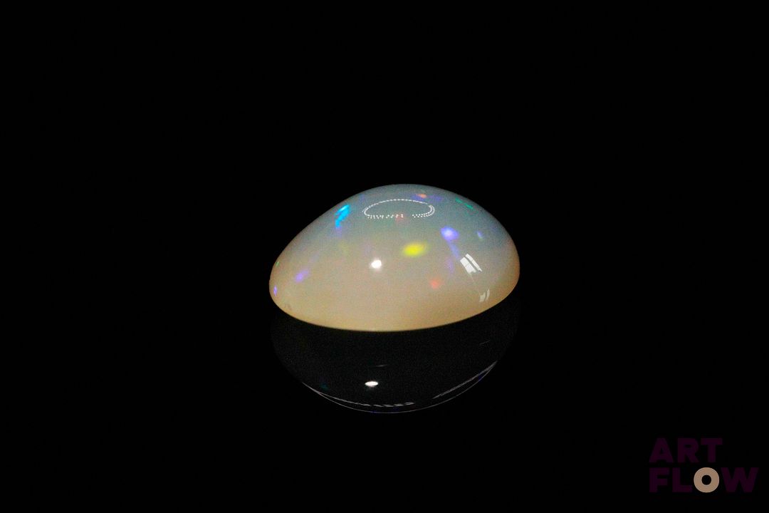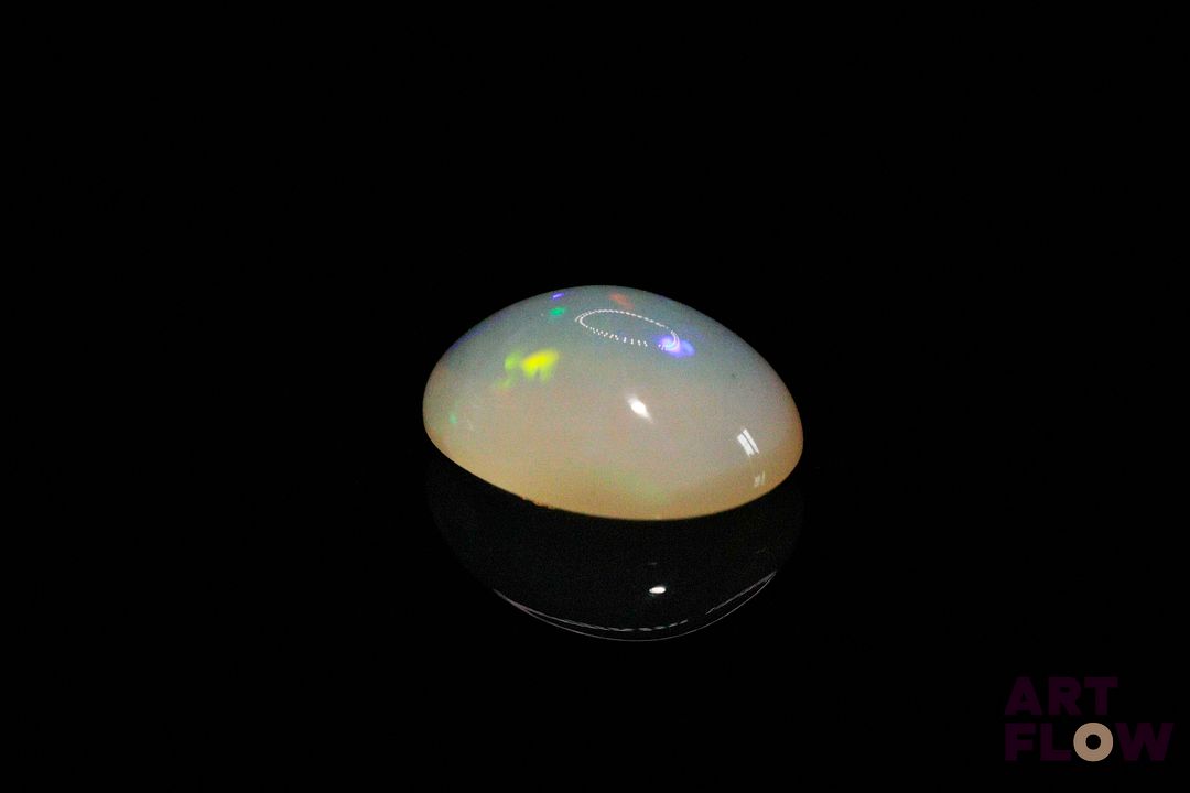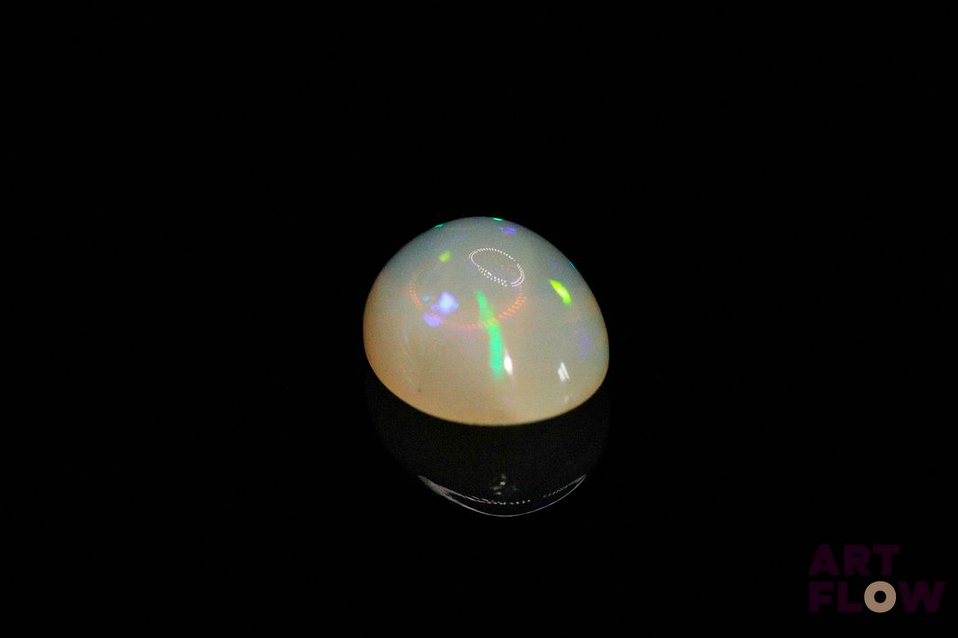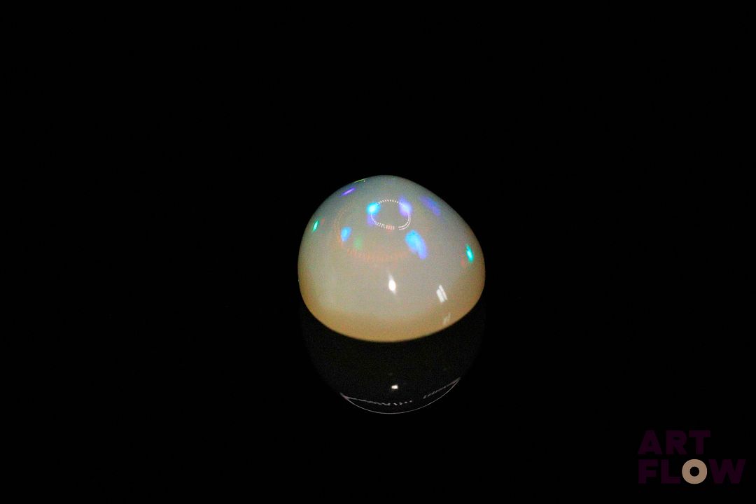 Opale blanche cabochon ovale. Beaux éclats de couleur, dominante bleue, dominante verte. 5.10 cts. 15.0mm x 11.0mm