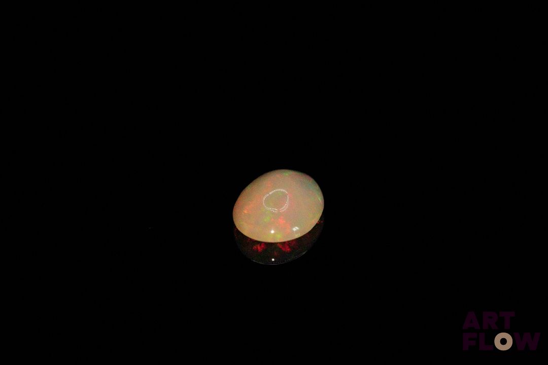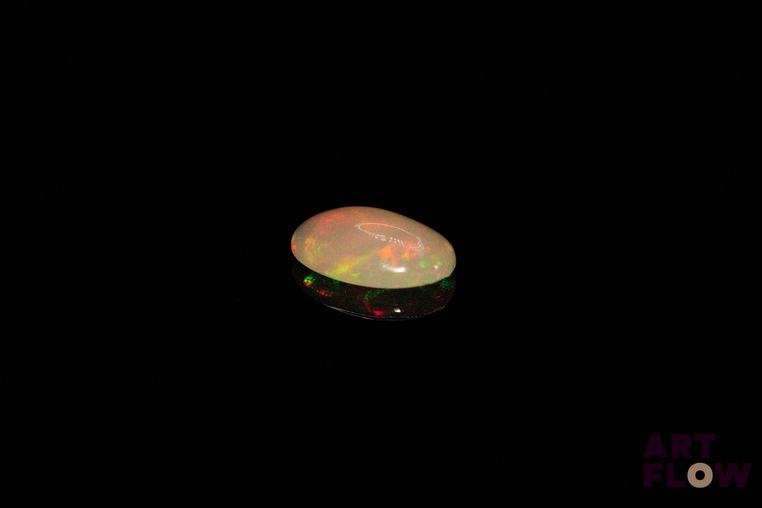Opale blanche cabochon ovale. Probablement Ethiopie. 1.22 ct. 11.0mm x 7.7mm