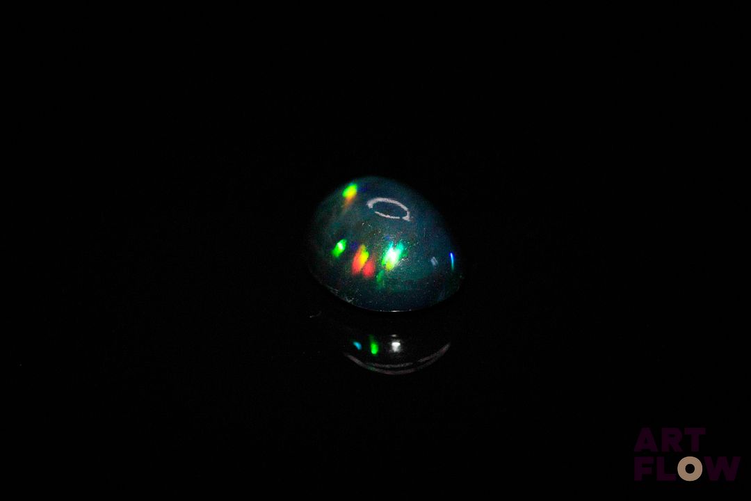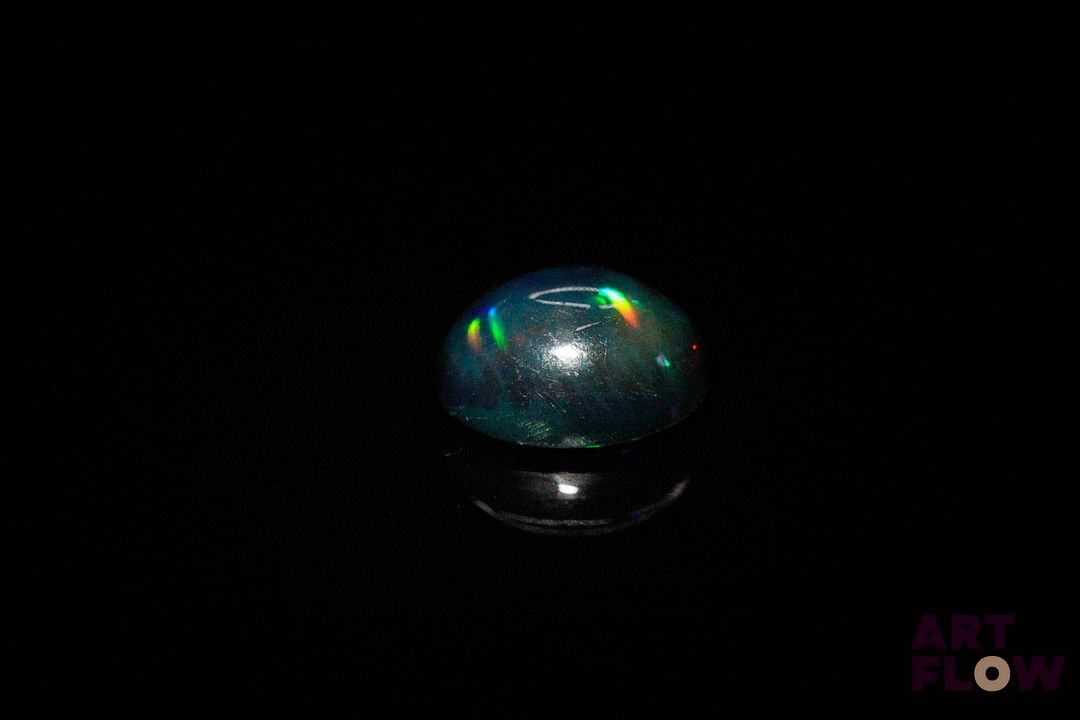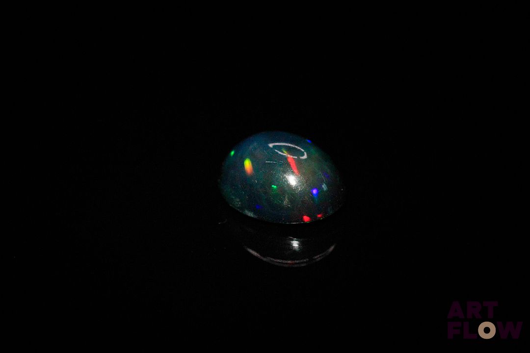 Opale noire cabochon ovale. Beaux éclats de couleur. 1.94 ct. 11.0mm x 9.0mm