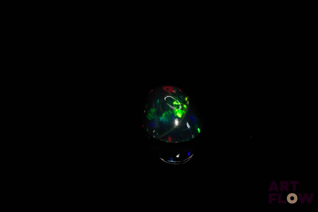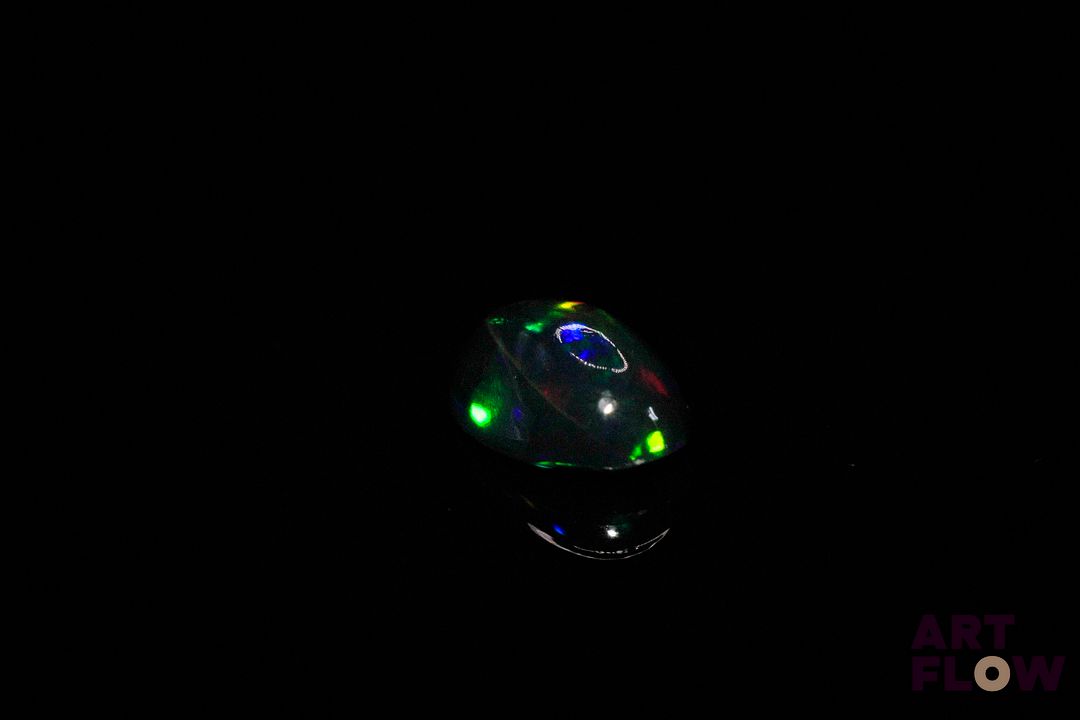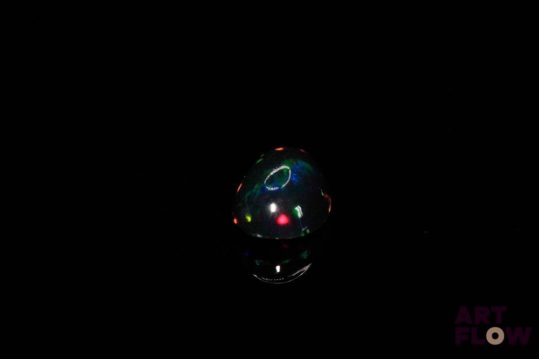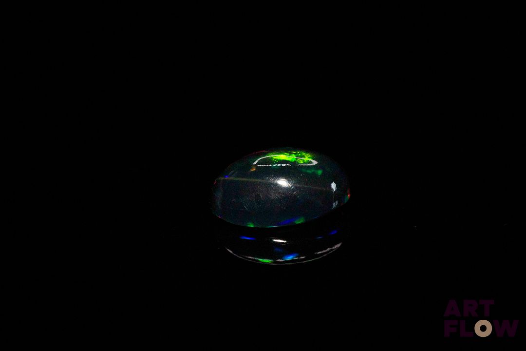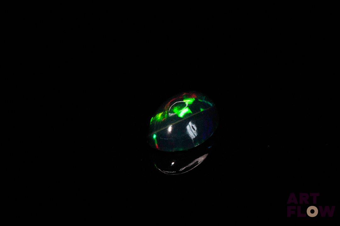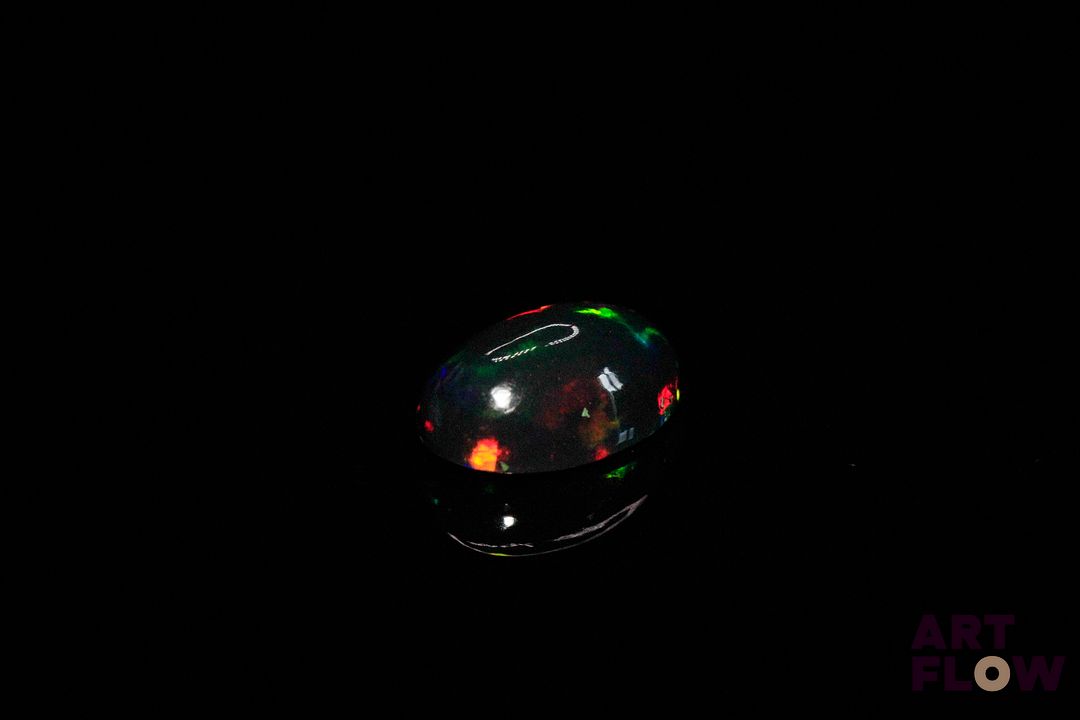 Opale noire cabochon ovale. Beaux éclats de couleur. 3.24 cts. 13.0mm x 9.0mm