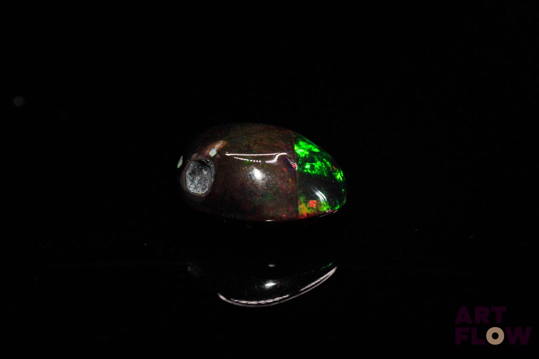 Opale noire cabochon ovale fantaisie. 5.55 cts. 14.5mm x 11.2mm