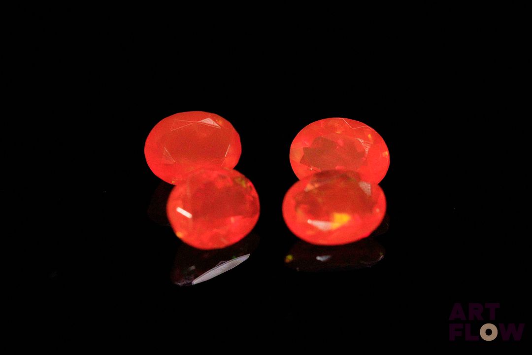 Quatre opales de feus ovales. Beaux éclats de couleur. 4.35 cts. Dims. moy.: 9.0mm x 7.0mm