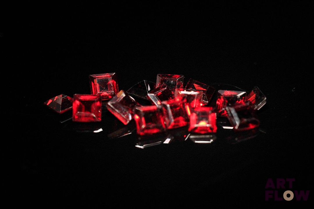 Quinze grenats carrés à pans vifs. 7.01 cts. Dims. moy.: 4.0mm x 4.0mm