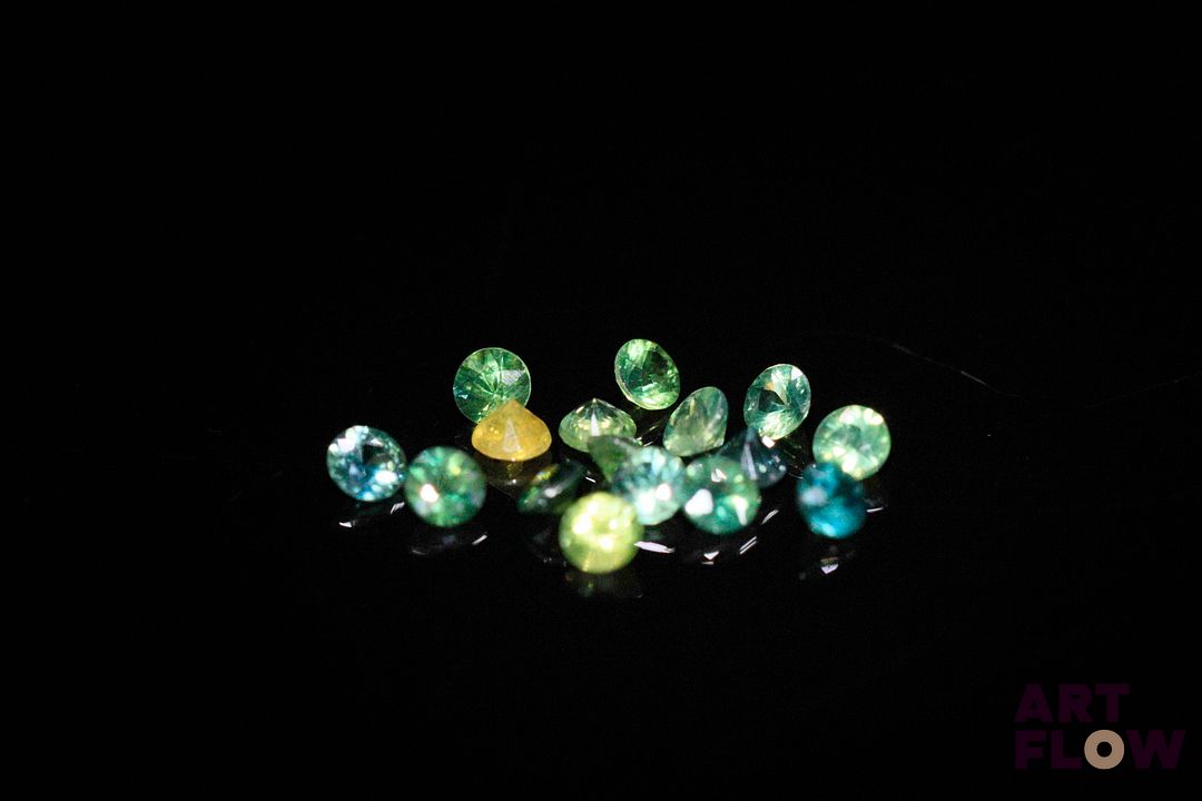 Seize saphirs multicolores ronds. 2.07 cts. Diam. moy.: 3.0mm