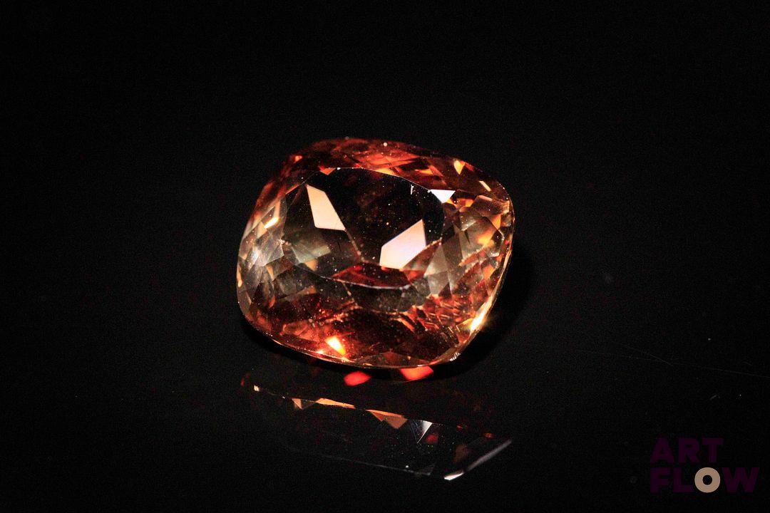 Topaze impériale coussin. Très belle couleur, beau lustre. 15.09 cts. 14.5mm x 13.0mm