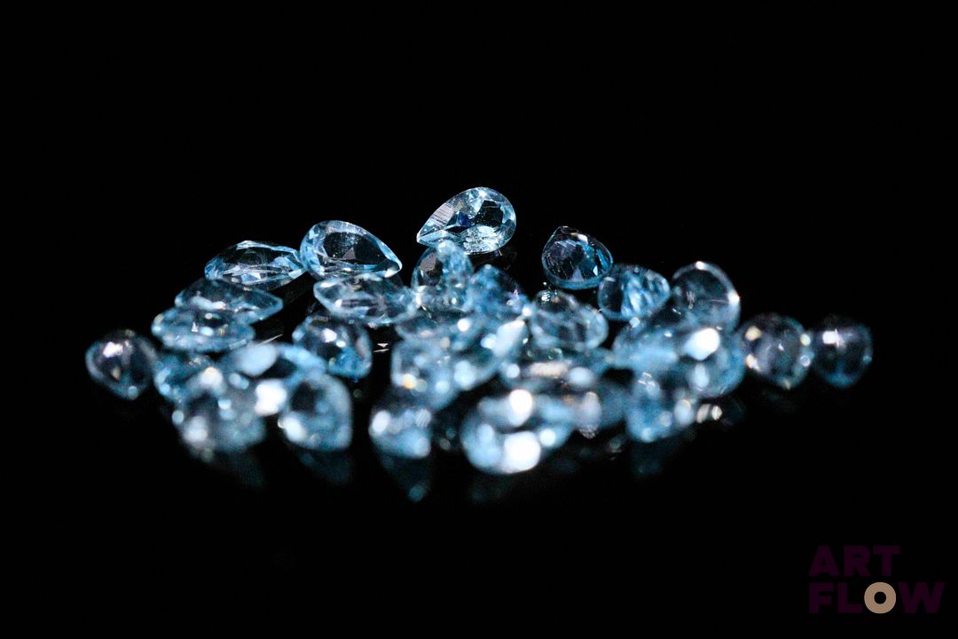 Trente topazes bleues poires. 7.45 cts. Dims. moy.: 5.0mm x 3.0mm