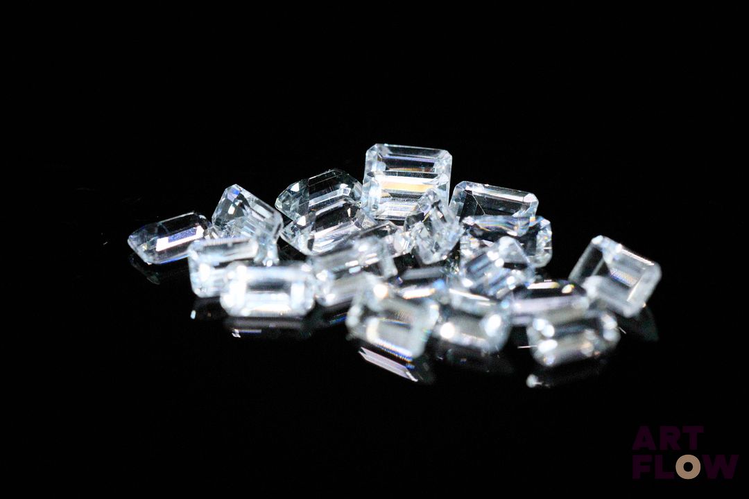 Vingt aigue-marines rectangulaires à pans coupés. 4.70 cts. Dims. moy.: 5.0mm x 3.0mm