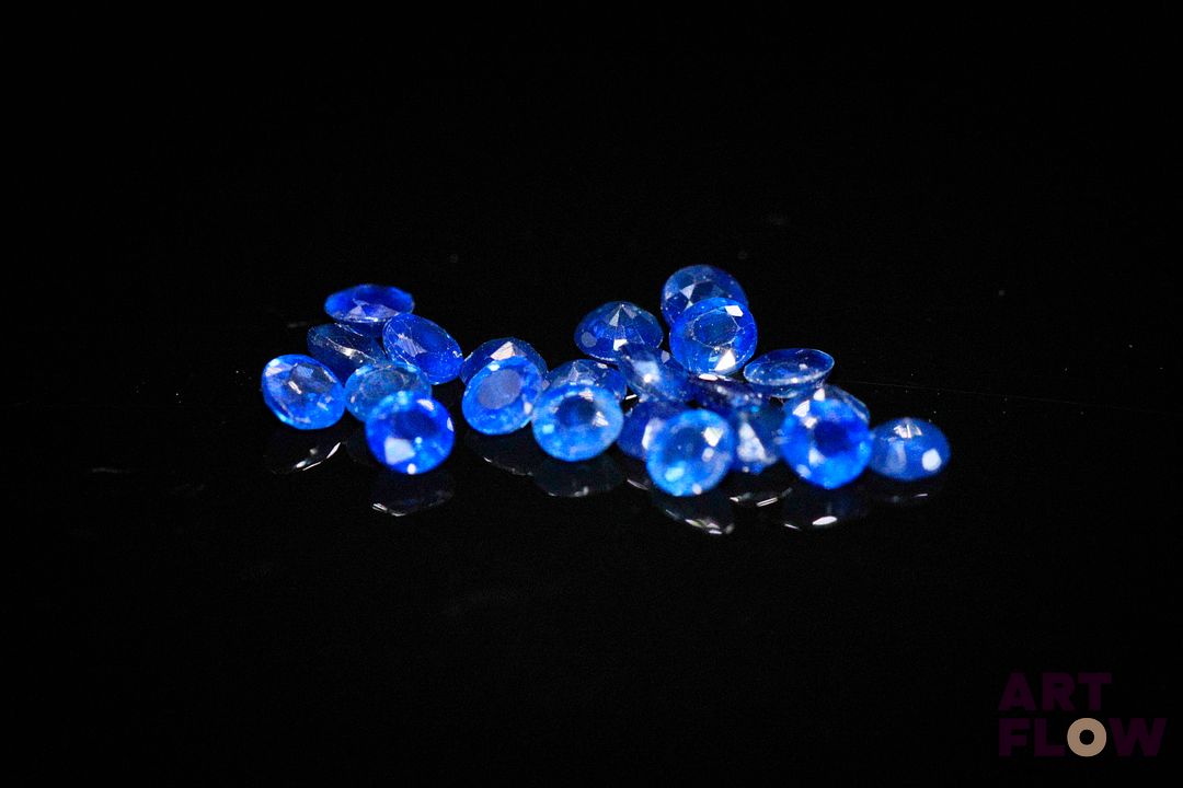 Vingt-deux saphirs ronds. 3.05 cts. Diam. moy.: 3.0mm