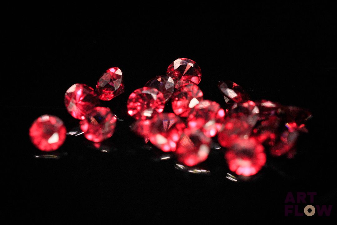 Vingt grenats rhodolites ronds. Jolie couleur. 8.04 cts. Diam. moy.: 4.5mm