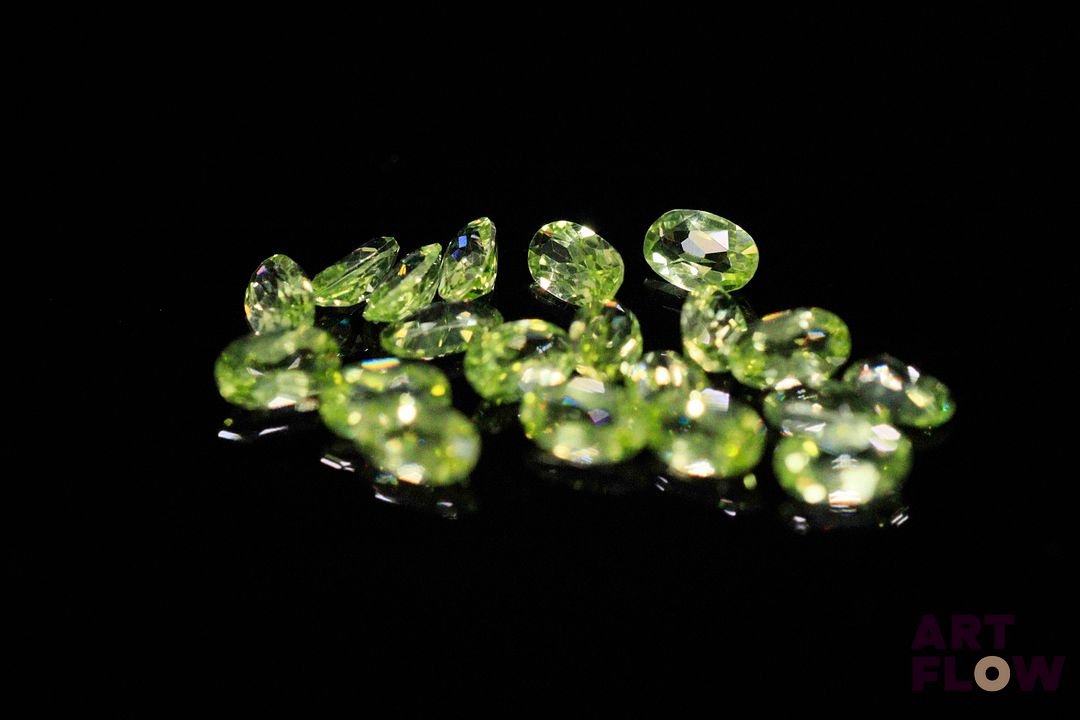 Vingt péridots ovales. 4.60 cts. Dims. moy.: 5.0mm x 3.0mm