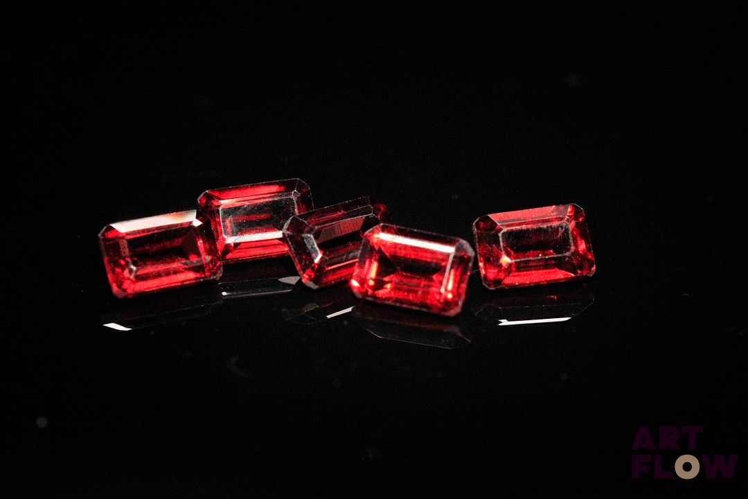 Cinq grenats rectangulaires à pans coupés. 4.22 cts. Dims. moy.: 6.0mm x 4.0mm