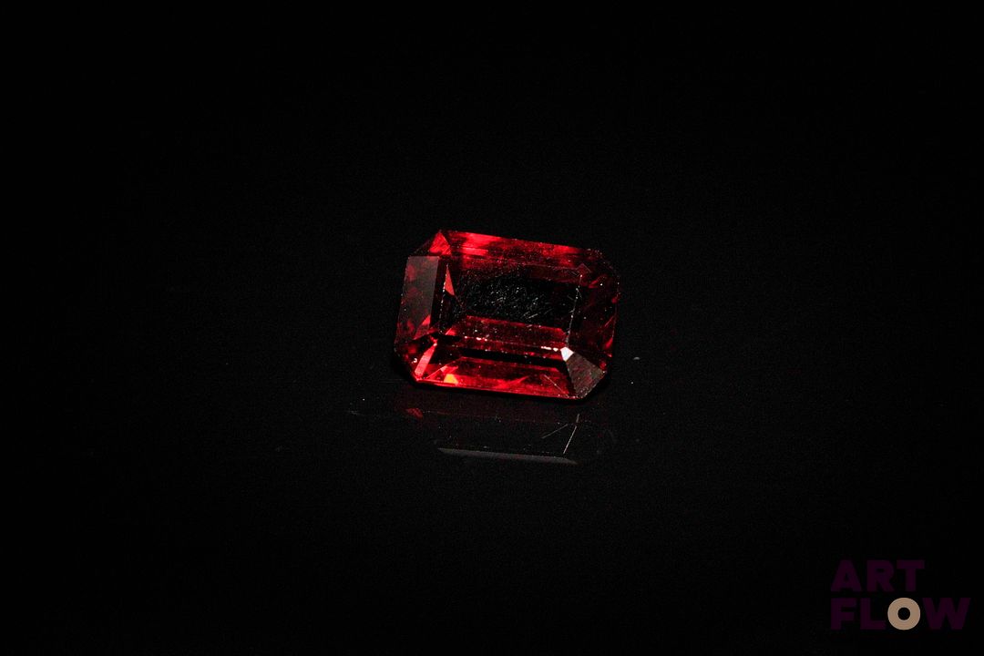 Grenat rectangulaire à pans coupés. Très belle couleur. 0.81 ct. 6.0mm x 5.0mm