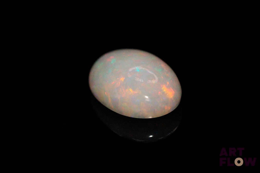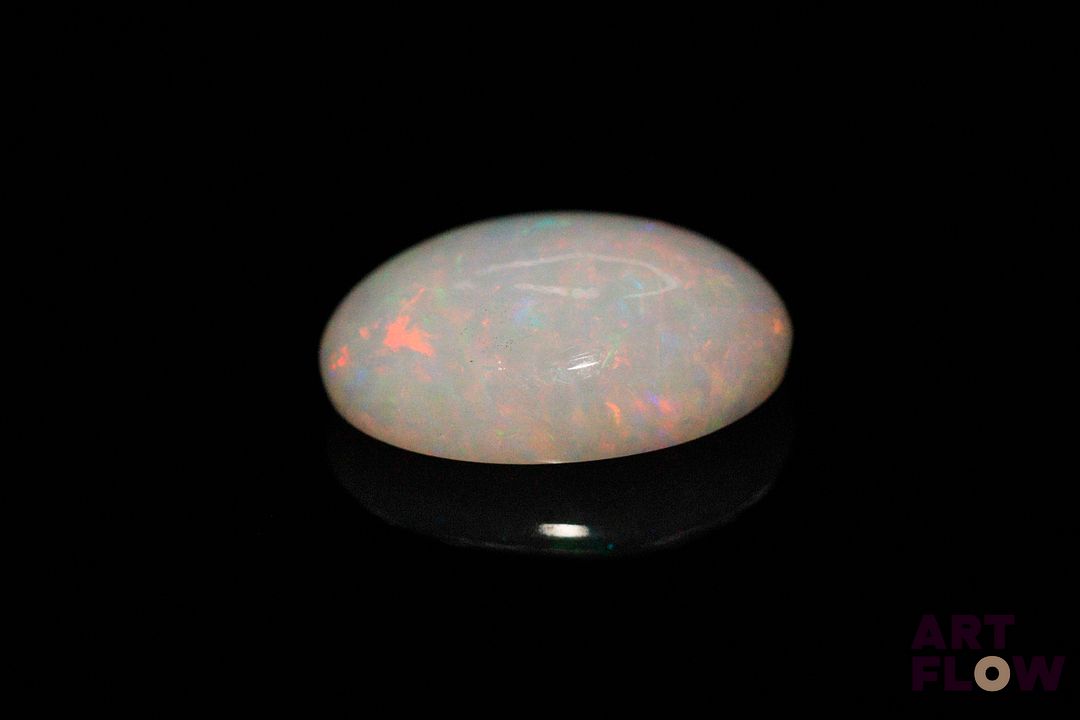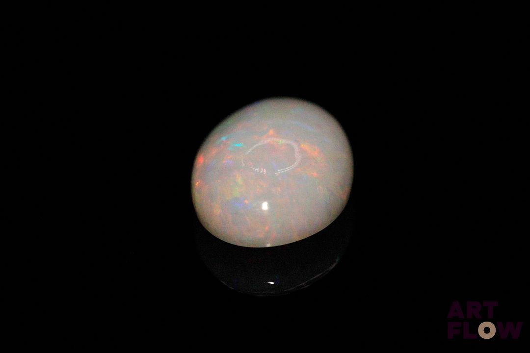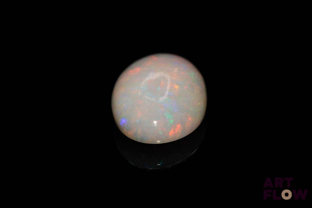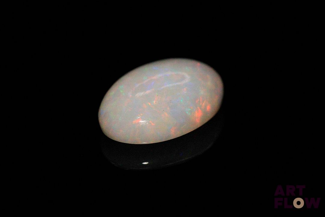 Importante opale blanche cabochon ovale. Très belle couleur, beaux éclats de couleur. 5.74 cts. 17.0mm x 12.0mm