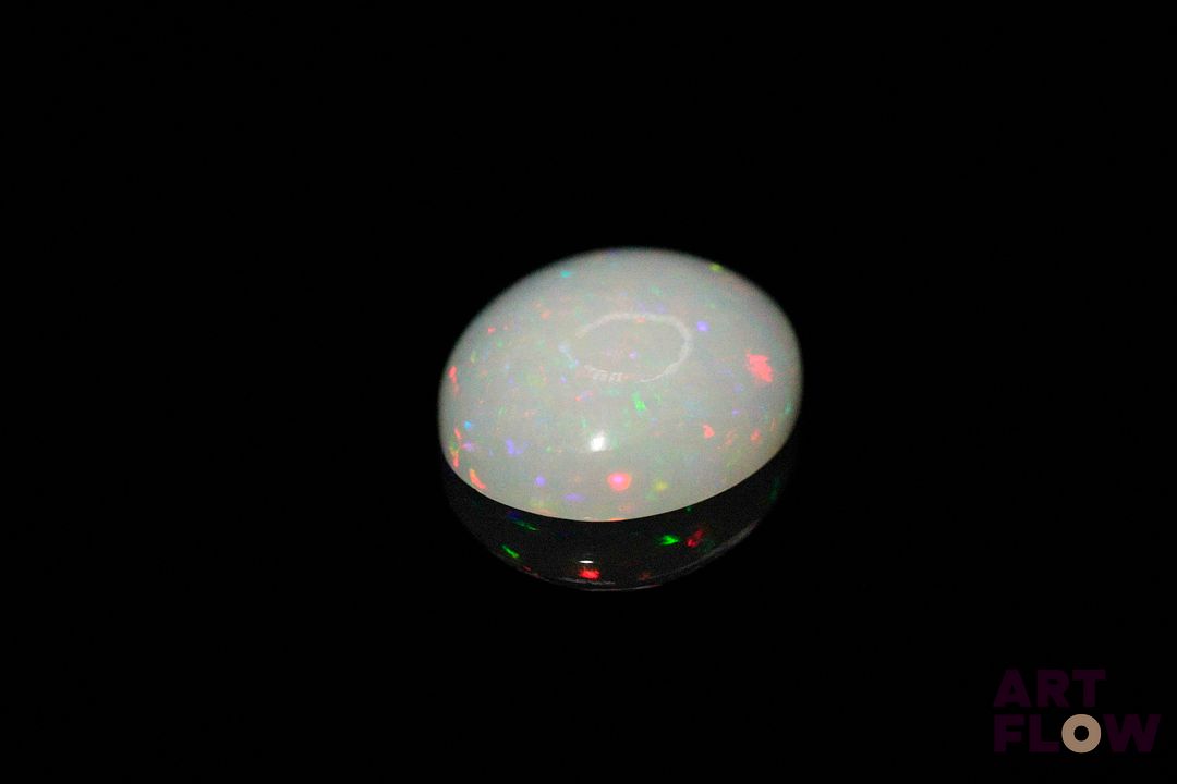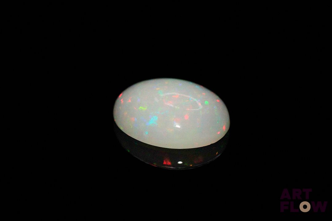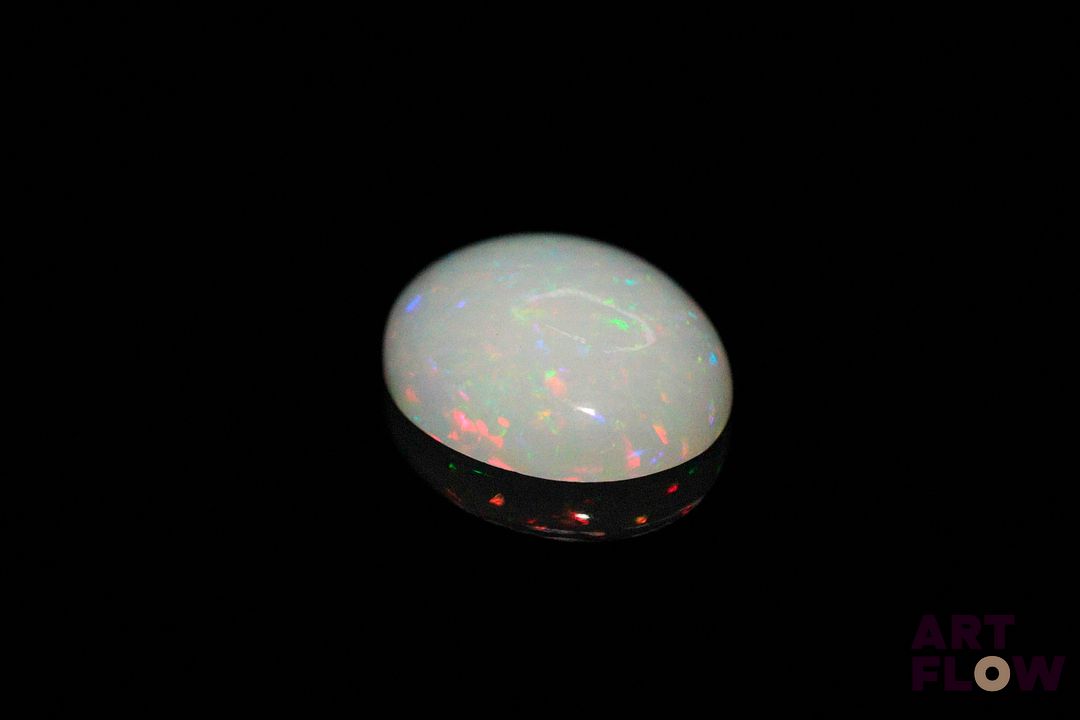 Opale blanche cabochon ovale. Beaux éclats de couleur. 4.43 cts. 15.0mm x 13.0mm