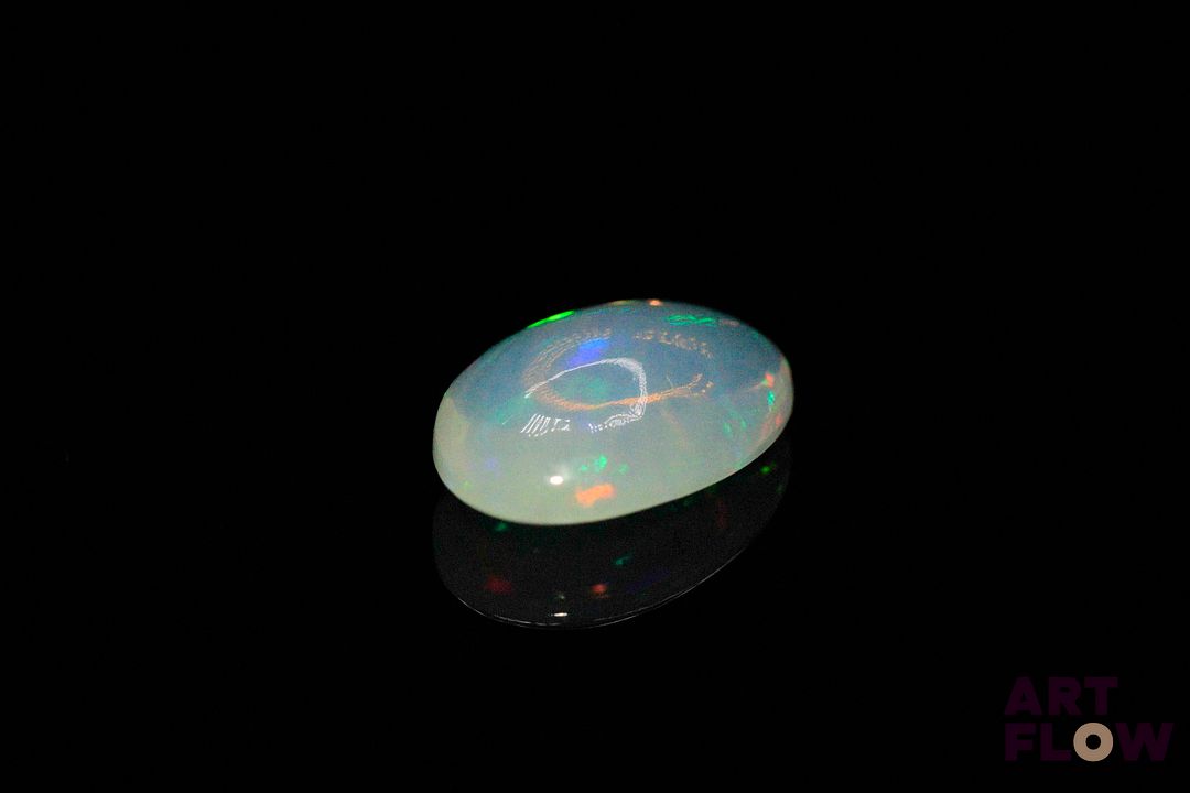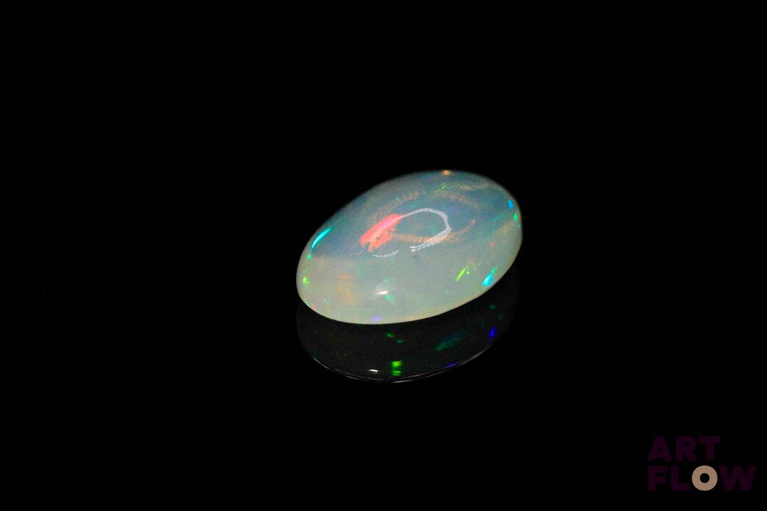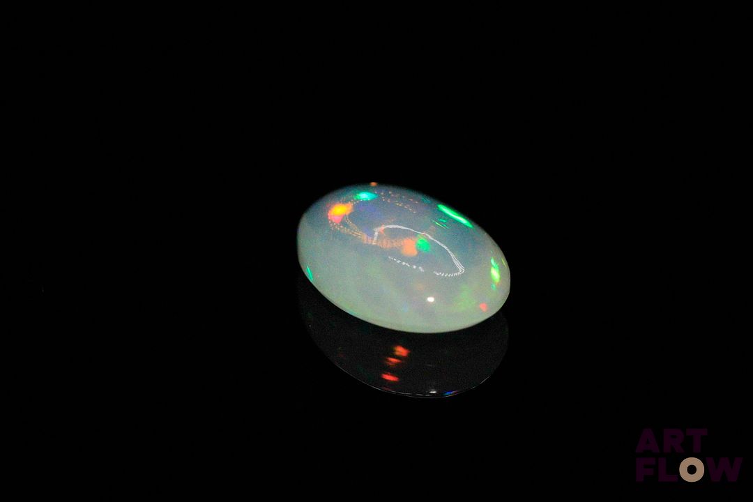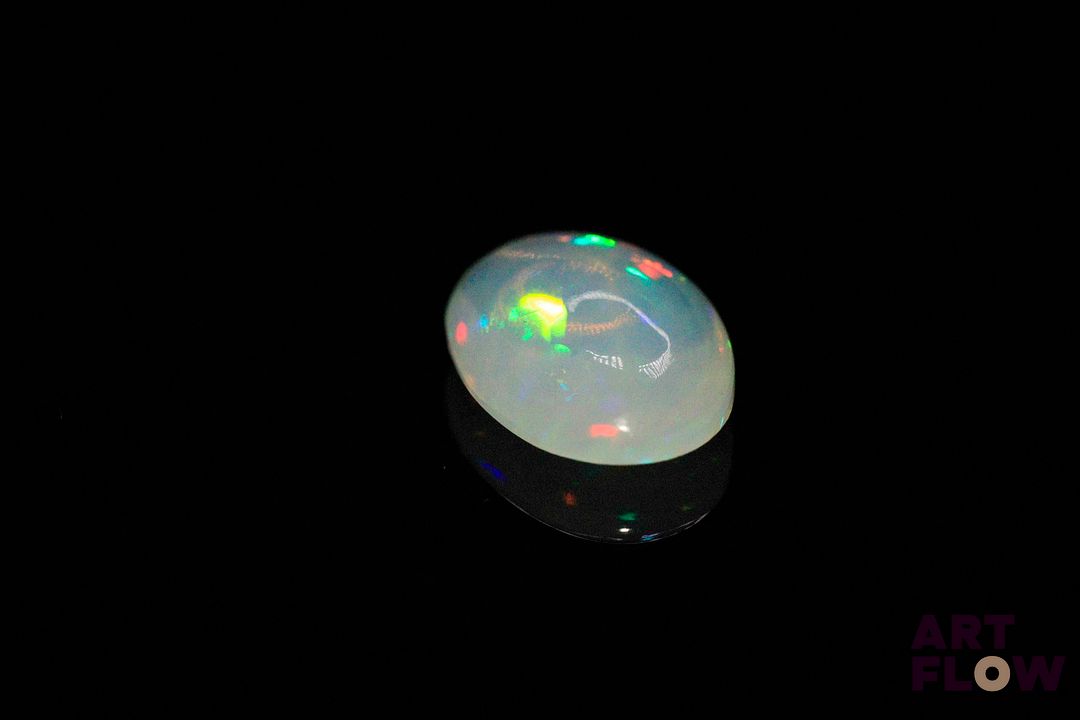 Opale blanche cabochon ovale. Très belle couleur, beaux éclats de couleur. 2.85 cts. 14.0mm x 10.0mm
