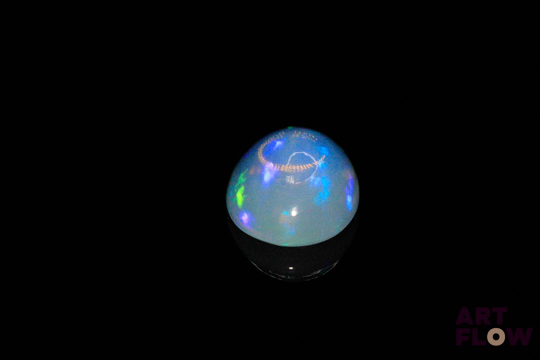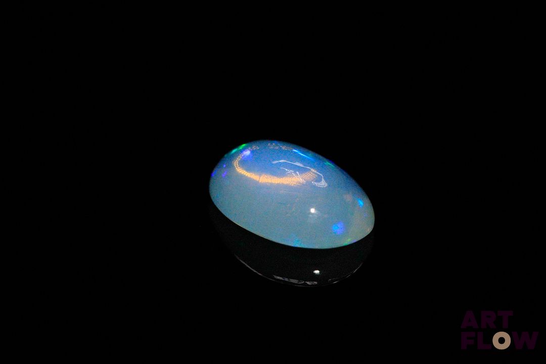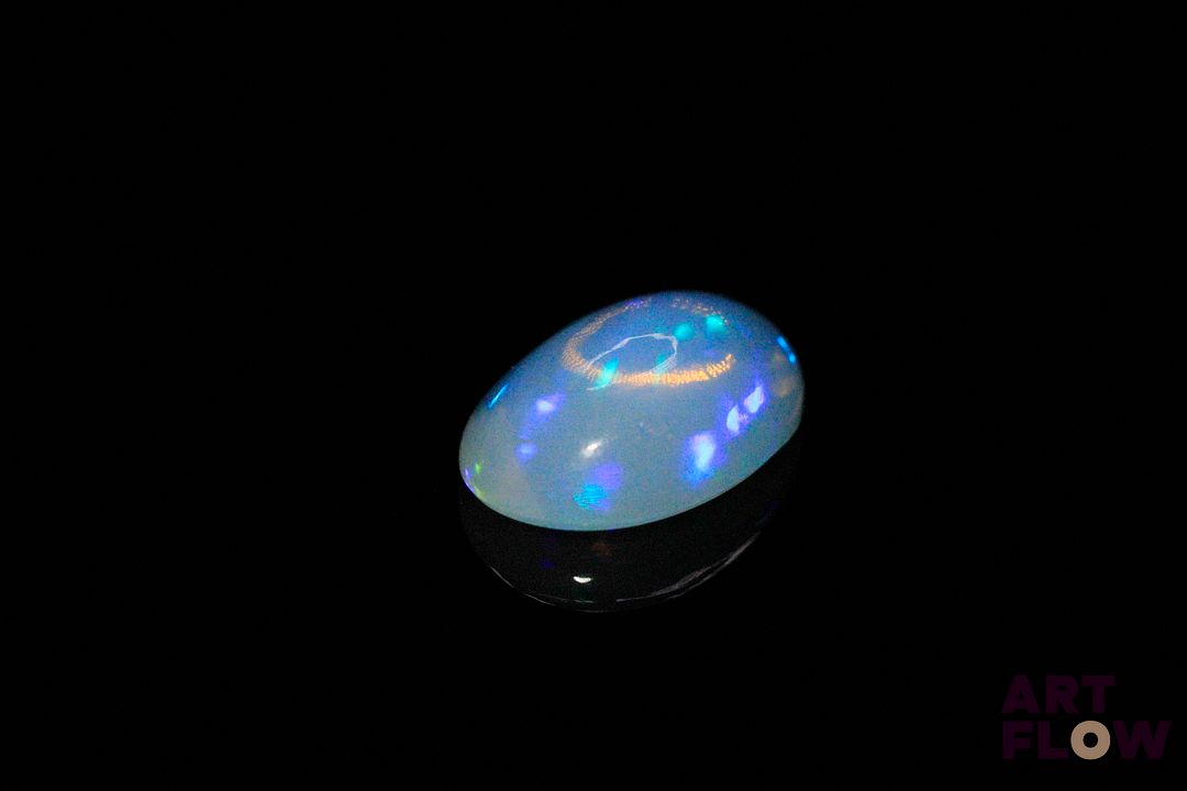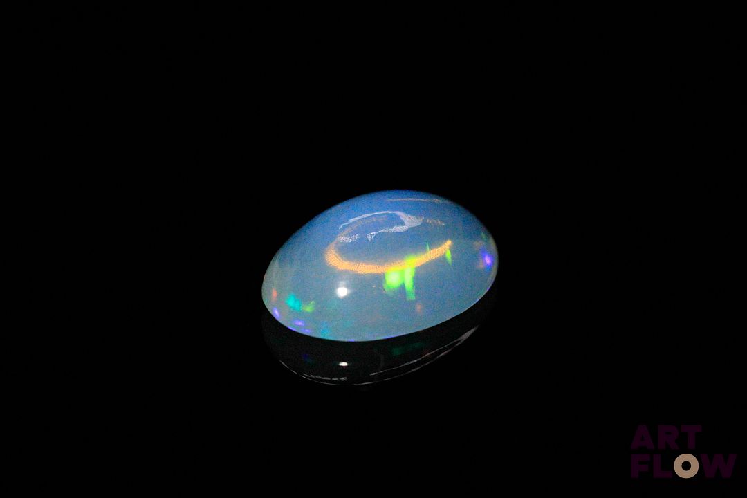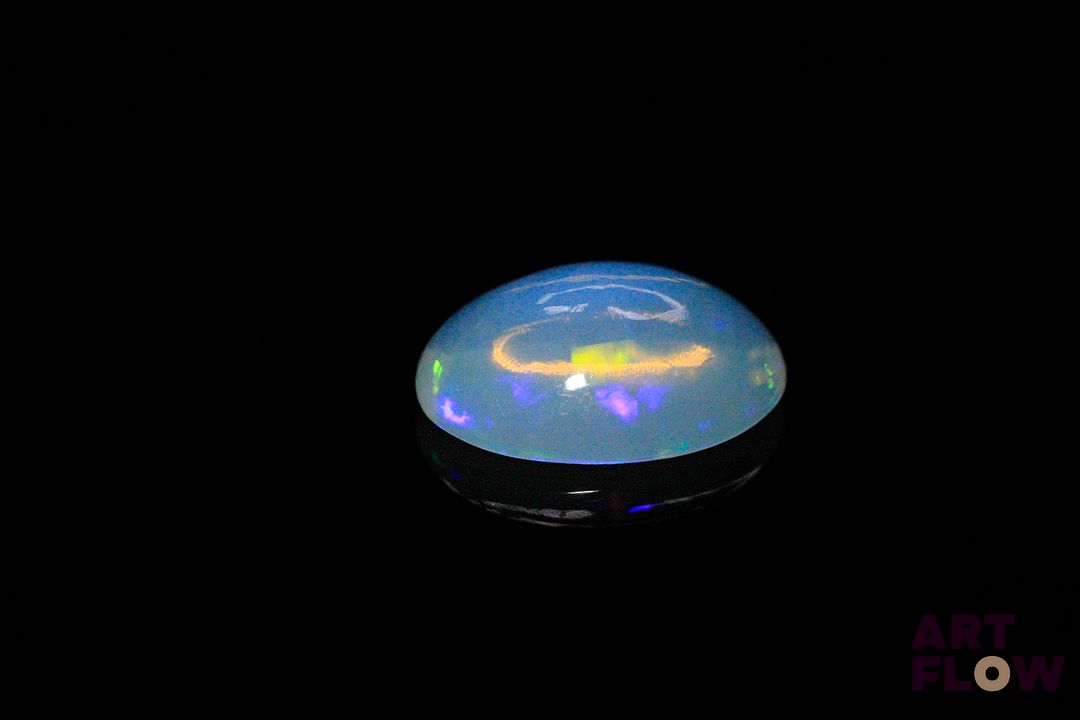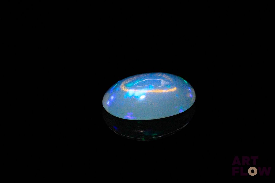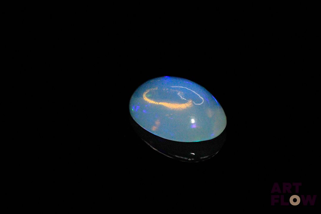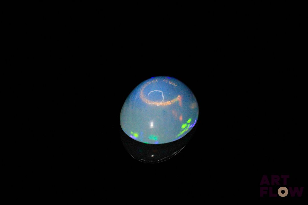 Opale blanche cabochon ovale. Très belle couleur, beaux éclats de couleur. 3.04 cts. 14.0mm x 10.0mm