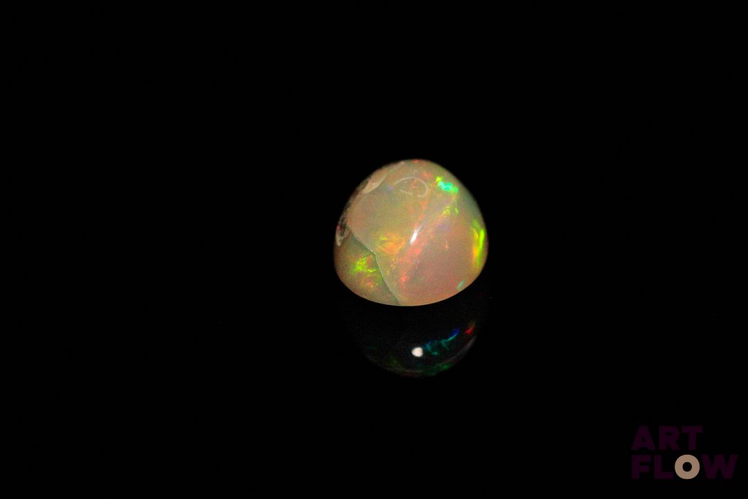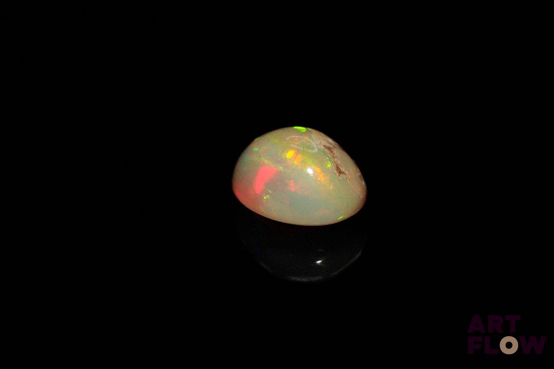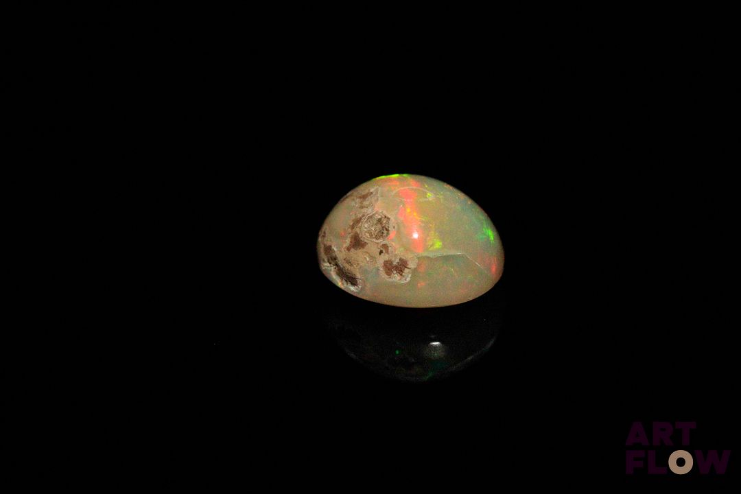 Opale blanche cabochon ovale. Très belle couleur, beaux éclats de couleur, inclusions. 2.22 cts. 10.0mm x 8.0mm
