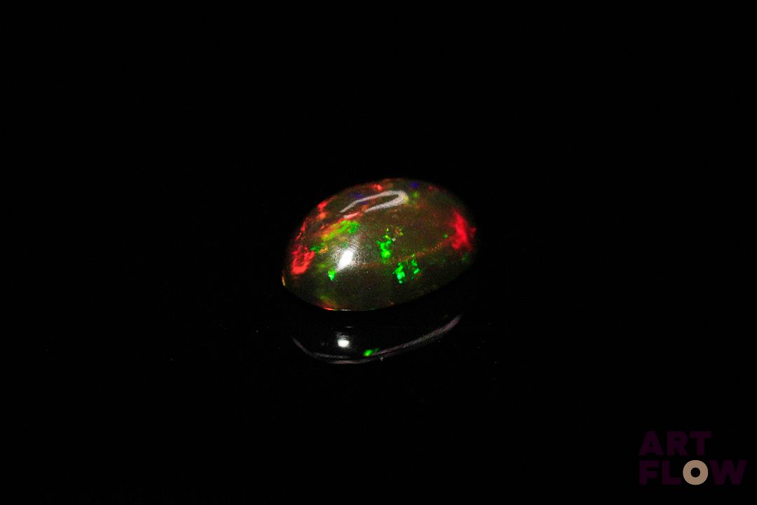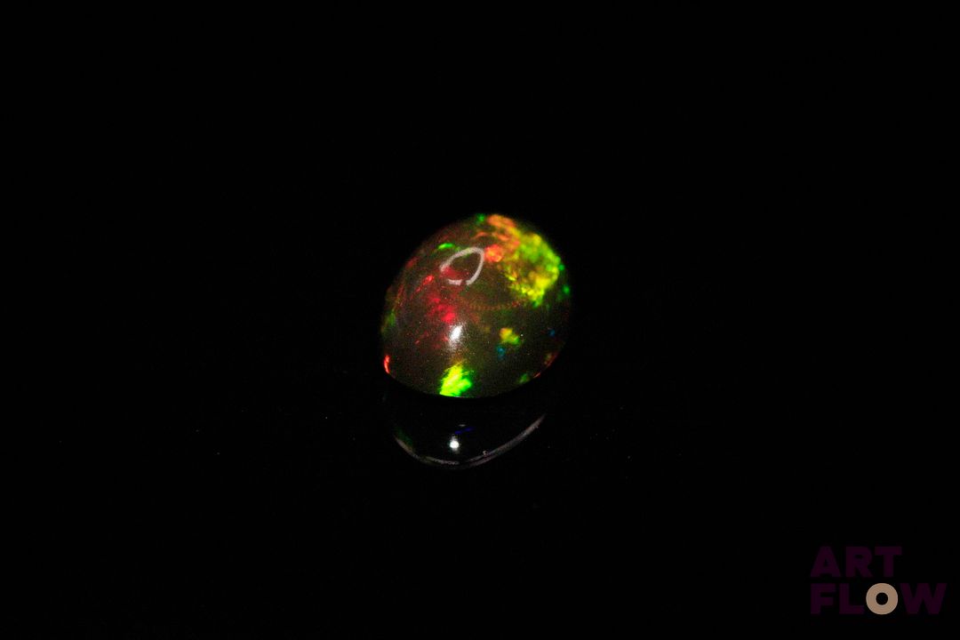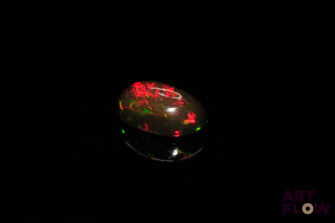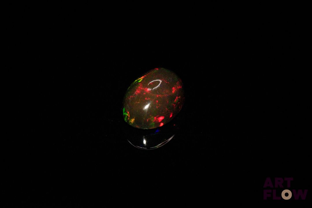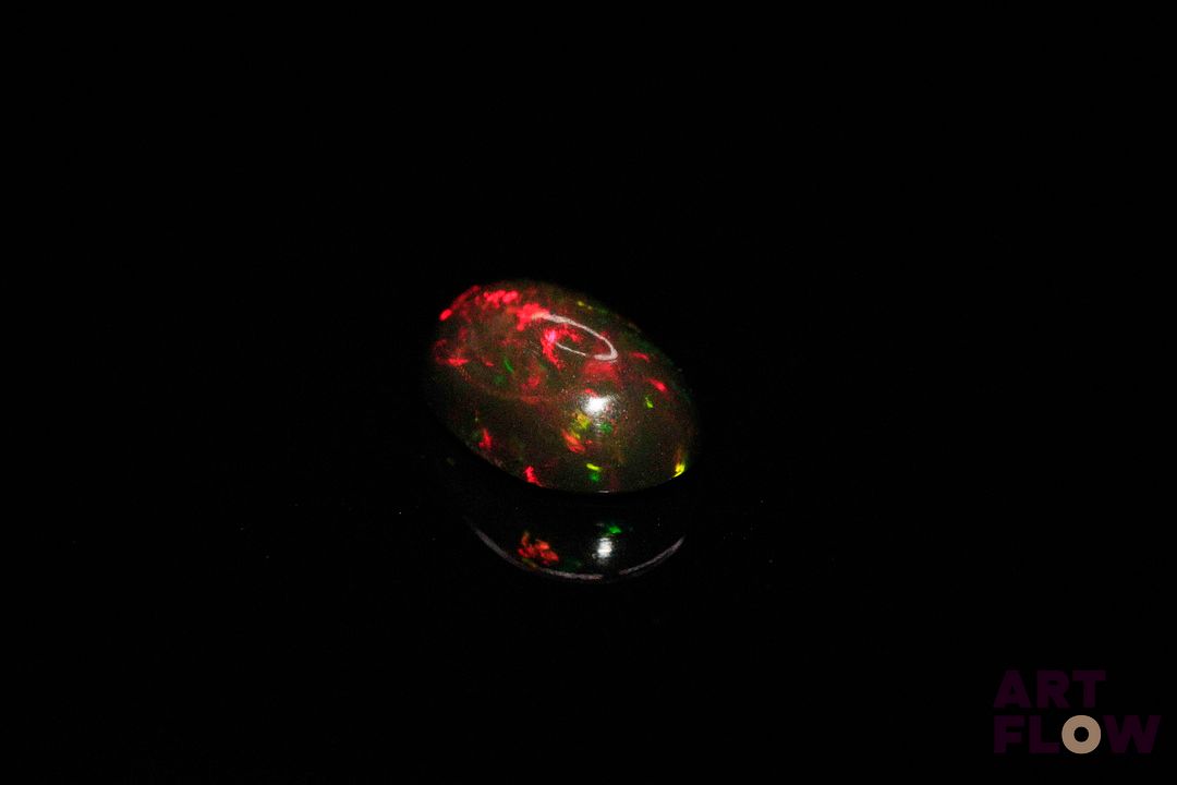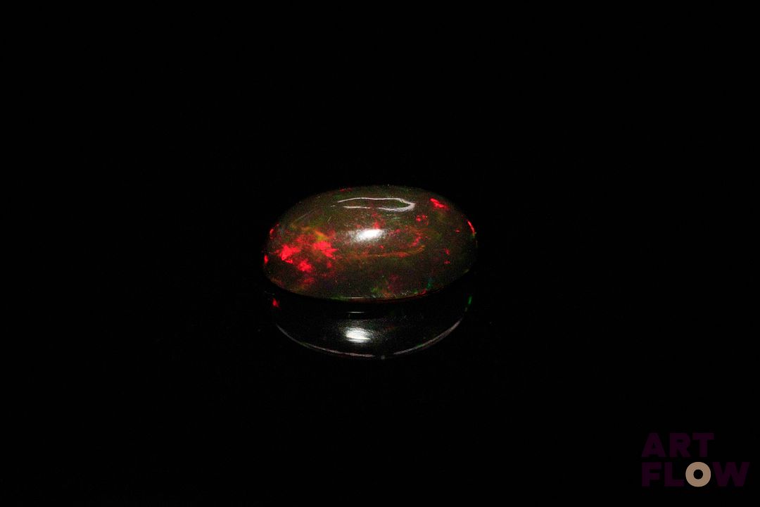 Opale brune cabochon ovale. Beaux éclats de couleur. 1.74 ct. 10.9mm x 7.2mm