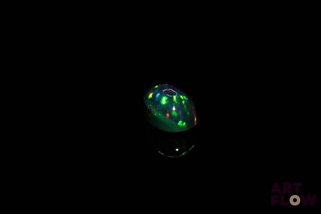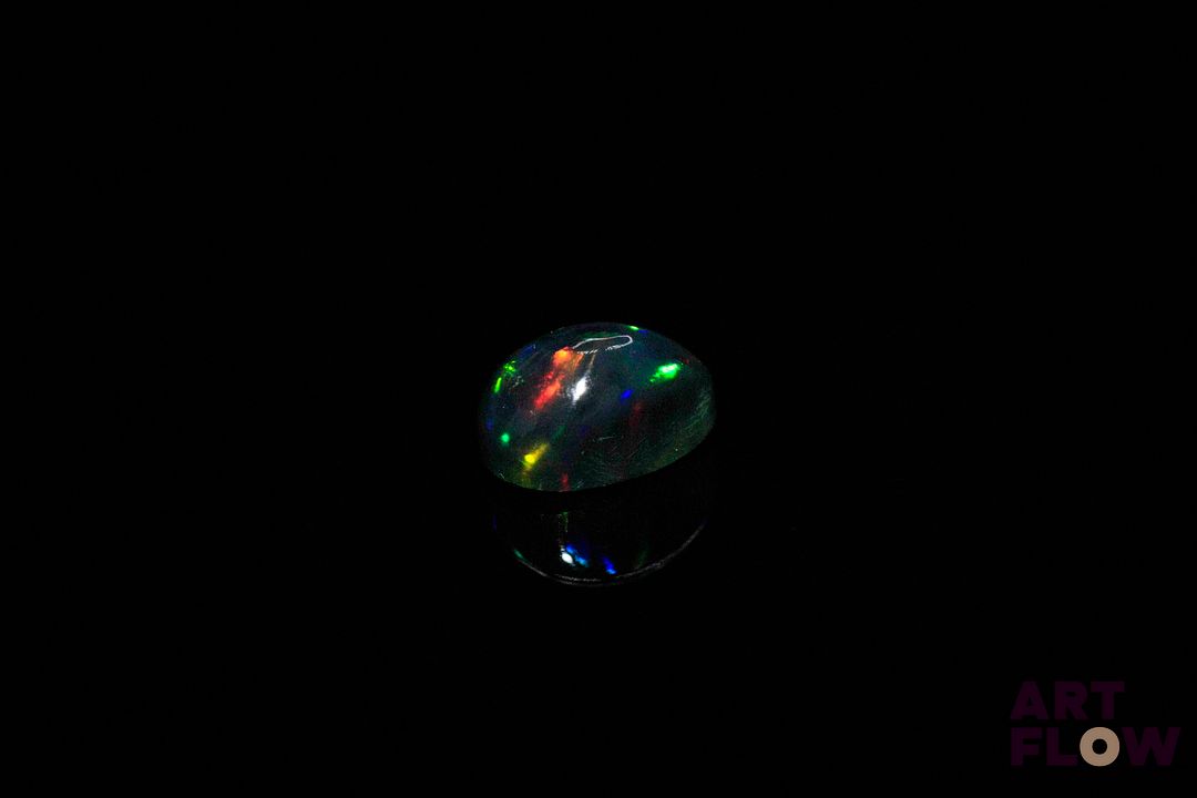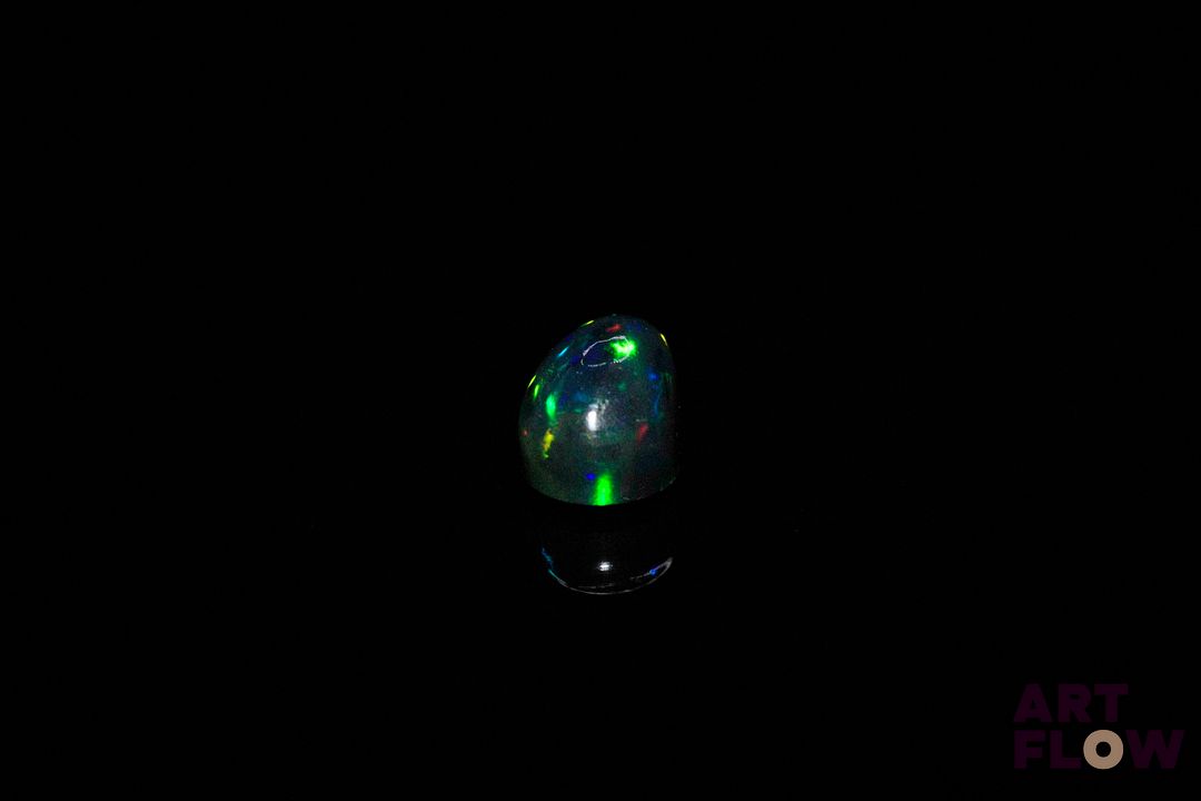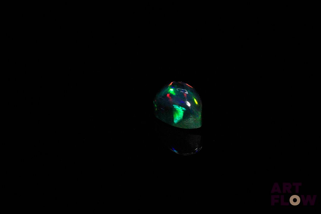 Opale noire cabochon poire. Beaux éclats de couleur. 1.32 ct. 9.0mm x 6.0mm