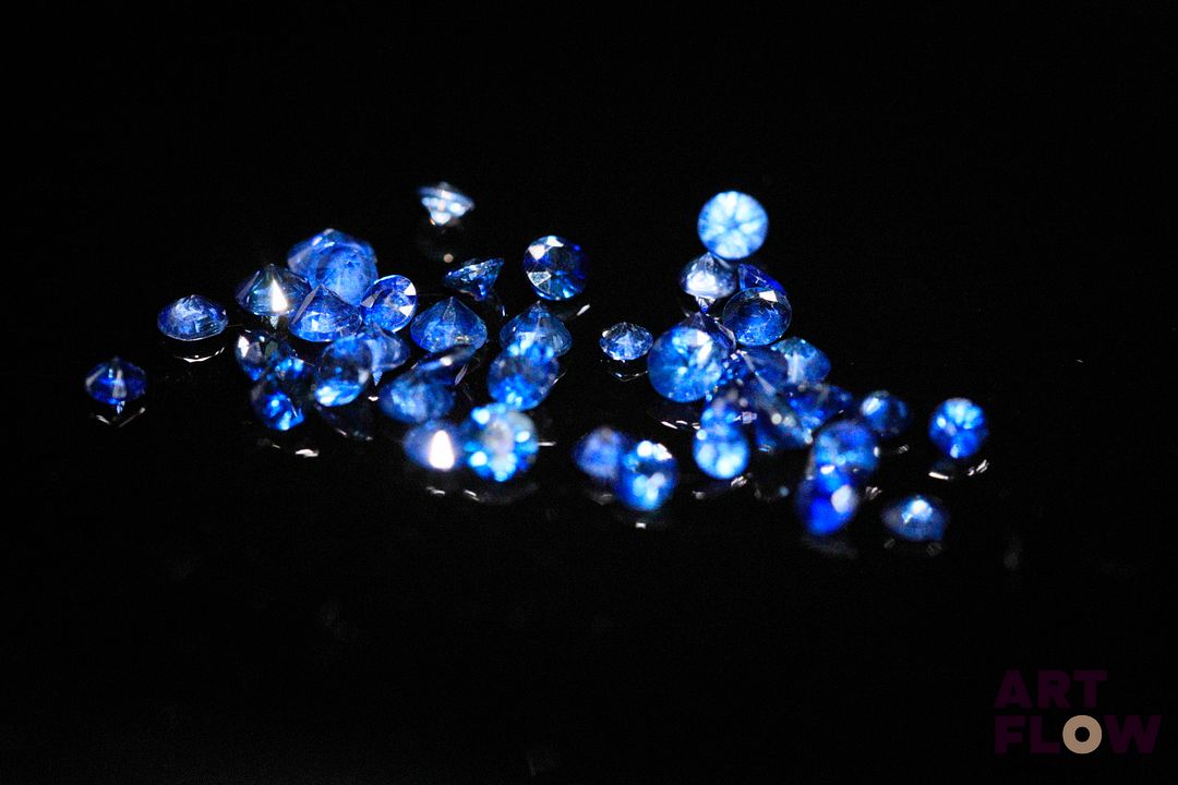 Quarante-deux saphirs ronds. 2.91 cts. Diam. moy.: 2.65mm