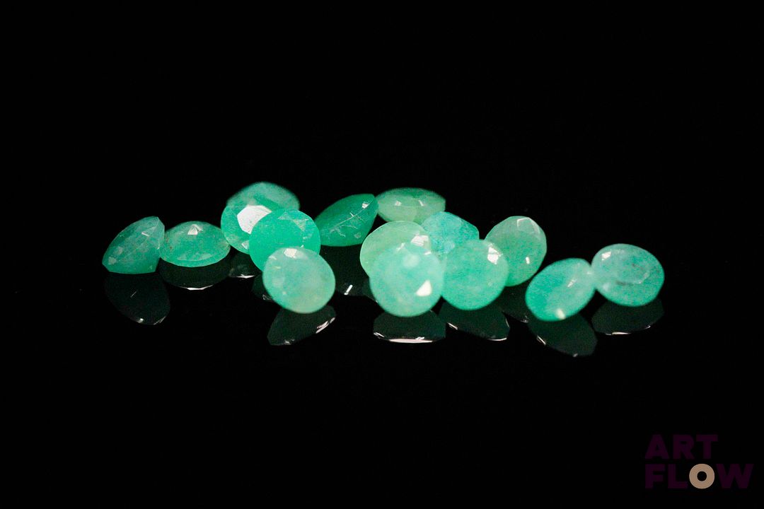 Quinze émeraudes rondes. Probablement Brésil, non chauffée. 4.30 cts. Diam. moy.: 4.1mm