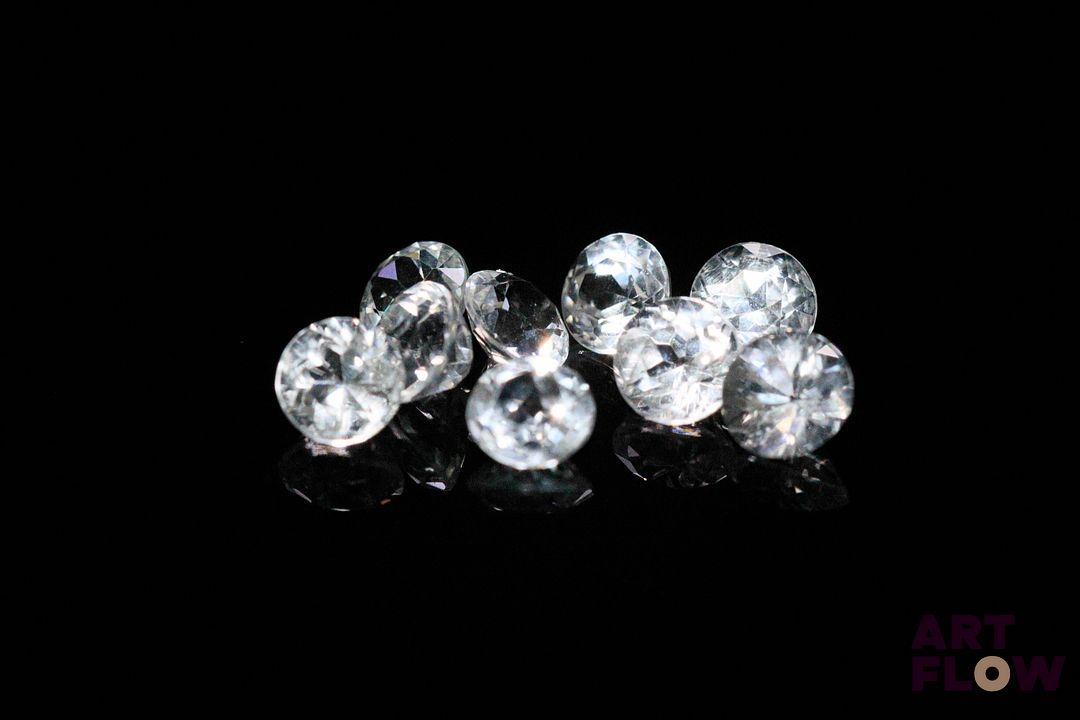 Six topazes incolores rondes. 9.37 cts. Diam. moy.: 6.0mm