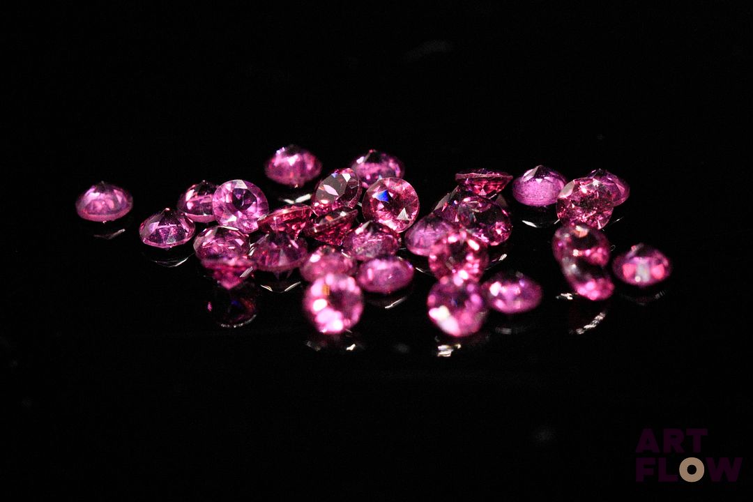 Trente grenats rhodolites ronds. Belle couleur. 6.25 cts. Diam. moy.: 3.4mm