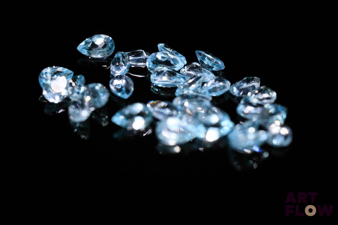 Trente topazes bleues poires. 7.57 cts. Dims. moy.: 5.0mm x 3.0mm