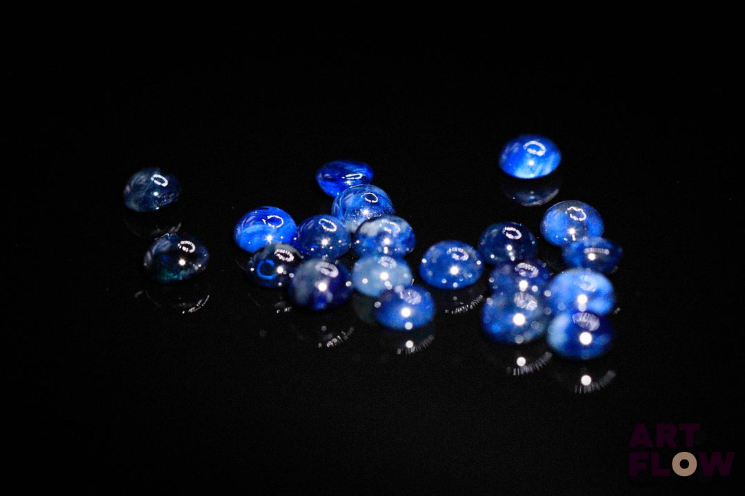 Vingt saphirs cabochons ronds. 6.10 cts. Diam. moy.: 4.0mm