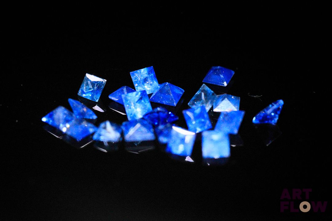 Vingt saphirs carrés. 3.17 cts. Dims. moy.: 2.9mm x 6.0mm