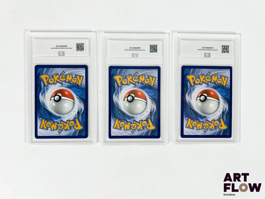 Ensemble de 3 cartes Pokémon gradées du bloc de série Écarlate& Violet : – Mew Ex 216/091 – Full Art shiny – Destinées de Paldéa – CCC 9,5 (Neuf +). – Gardevoir Ex 217/091 – Full Art shiny – Destinées de Paldéa – CCC 10 (Neuf +). – Rugit-Lune Ex 229/182 – Full Art Alternative – Faille Paradoxe – CCC 10 (Neuf +). Cartes en français.