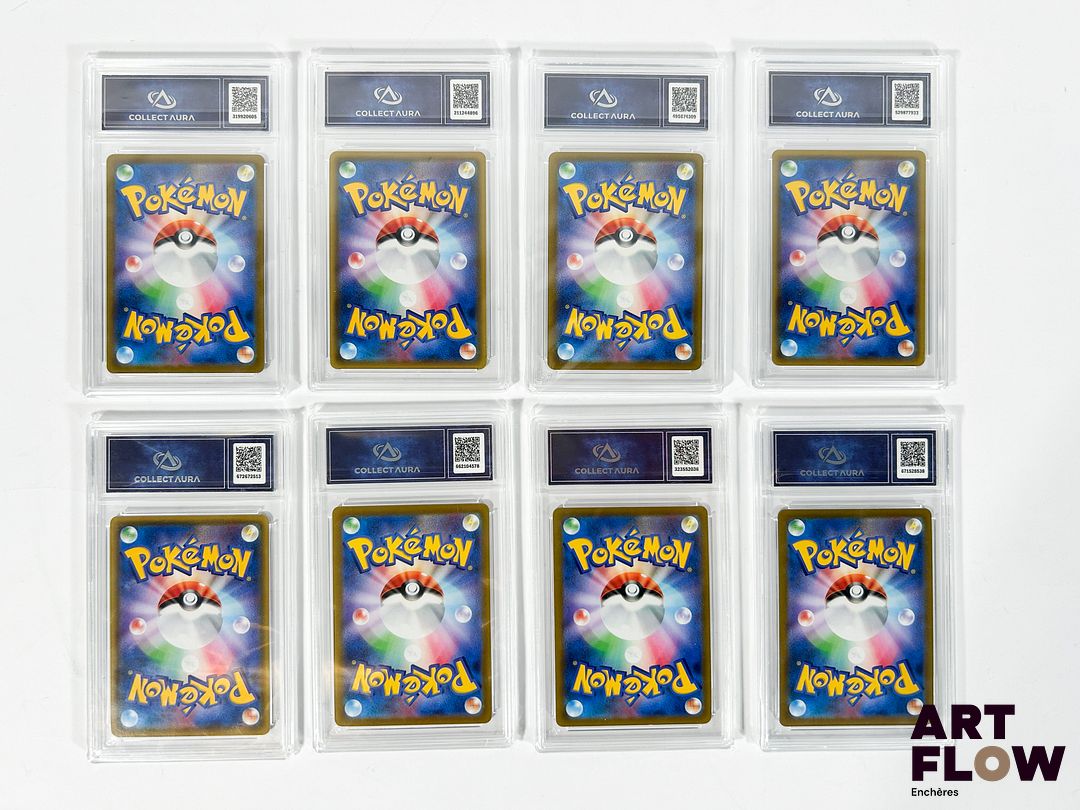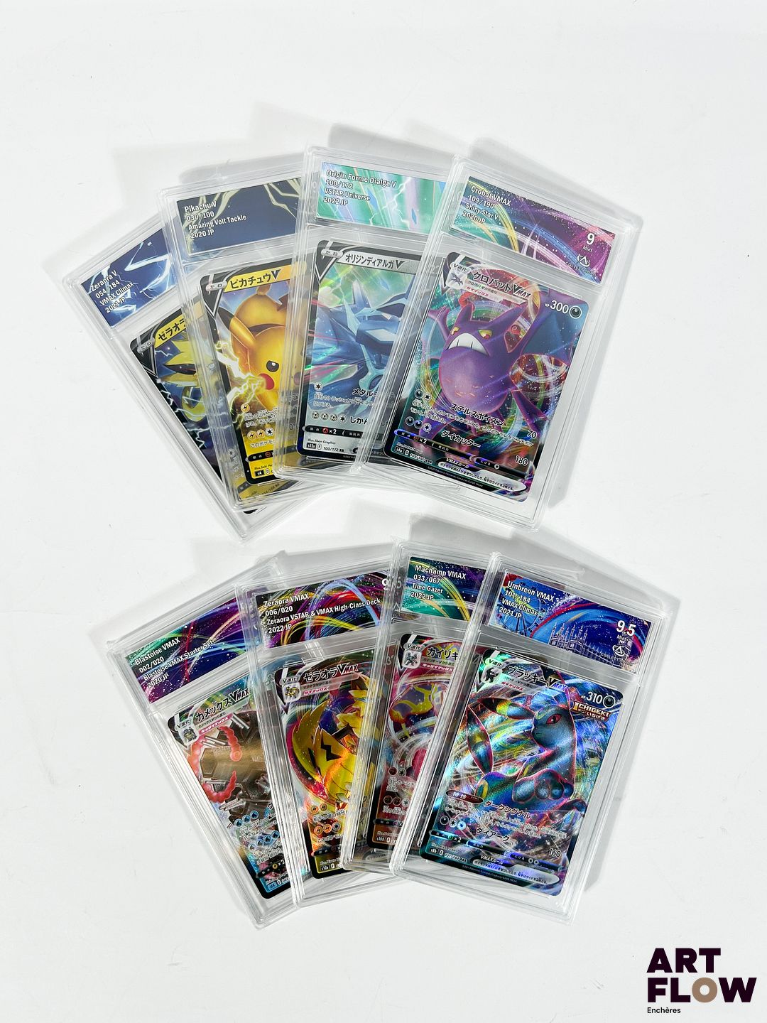 Ensemble de 8 cartes Pokémon japonaises gradées Collect Aura – Collection V et Vmax. Séries du bloc Épée&Bouclier. Cartes notées de 9 à 10 (Neuf à Neuf +), en japonais.