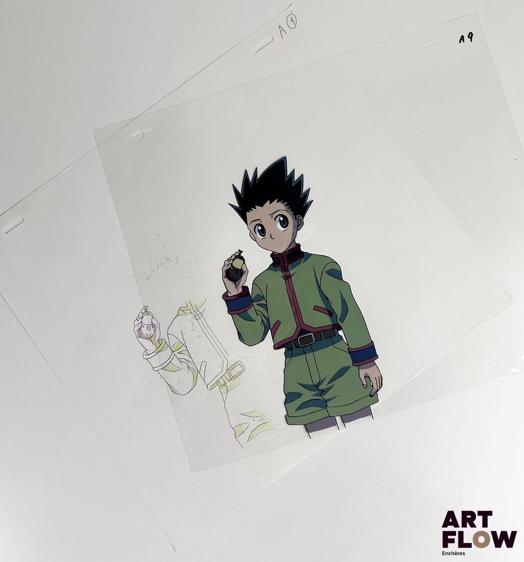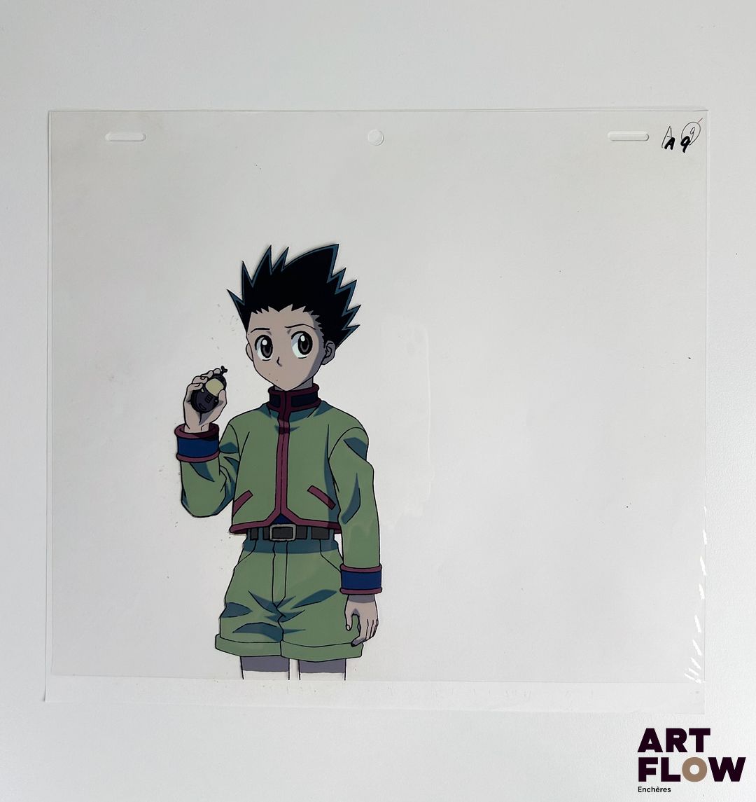 Hunter x Hunter Gon Freecss Cellulo à l’encre et à la gouache représentant Gon Freecss tenant un téléphone Anime / manga japonais créé par Yoshihiro Togashi « Gon Freecss est un jeune garçon courageux et optimiste, déterminé à devenir Hunter pour retrouver son père. Curieux et persévérant, il incarne l’aventure, l’amitié et la détermination. » Dimensions : 24 x 27 cm