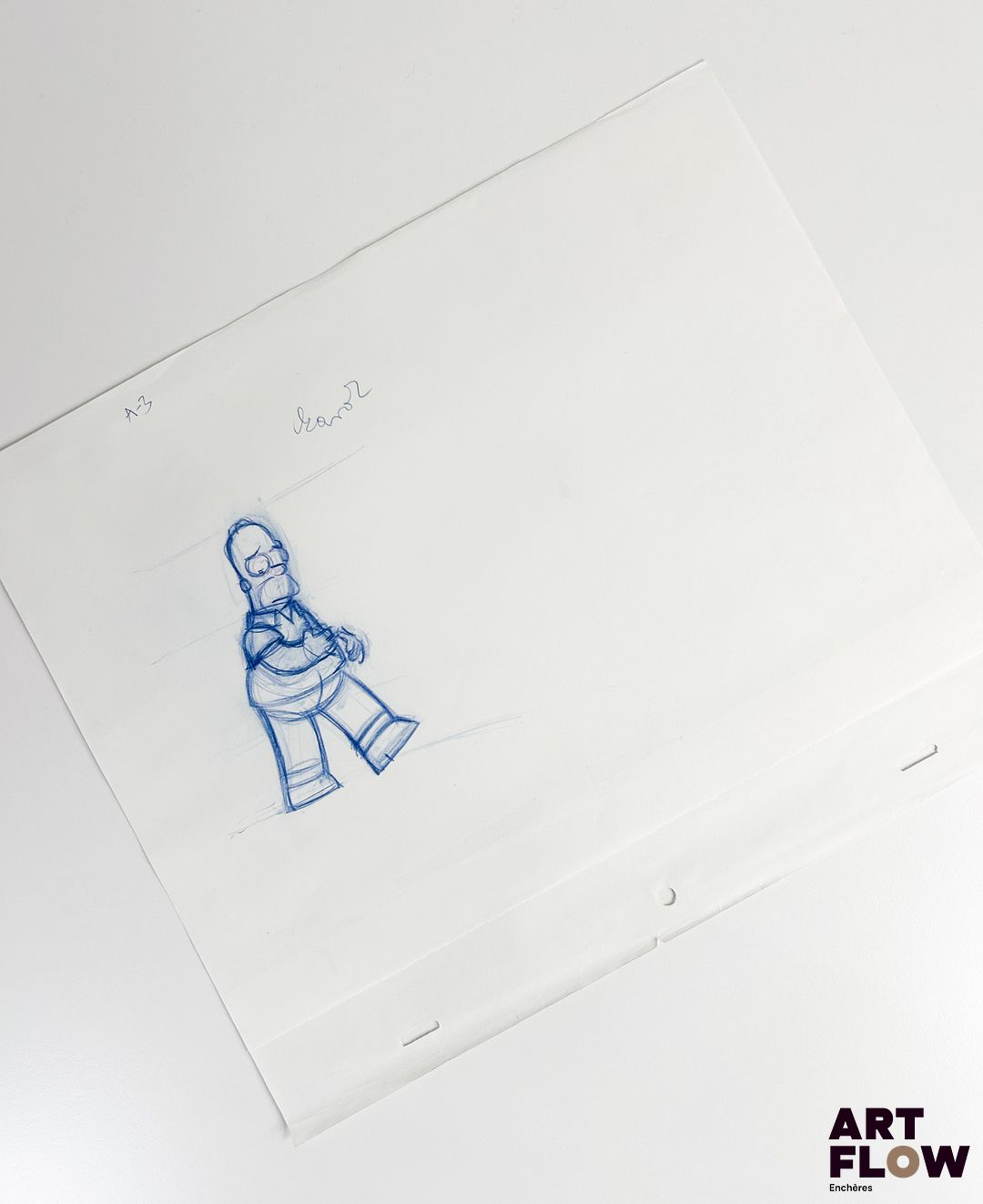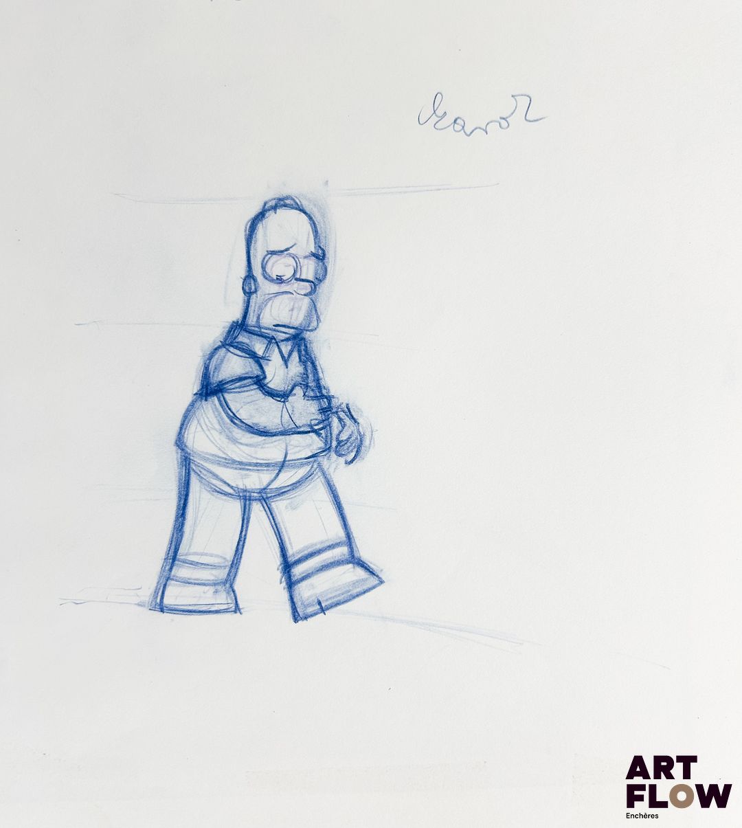 Les Simpsons (The Simpsons), d’après Matt Groening Homer Simpson Dessin au crayon de couleur représentant Homer Simpson triste Animé américain d’après la série Les Simpson de Matt Groening « Homer Simpson est le personnage principal de l’univers des Simpson. C’est le père de la famille Simpson, connu pour son caractère paresseux, gourmand et souvent maladroit, mais aussi pour son humour et son grand cœur malgré ses nombreuses bêtises. Il travaille à la centrale nucléaire de Springfield et est célèbre pour son exclamation ‘D’oh!’. » Dimensions : 27 x 32 cm