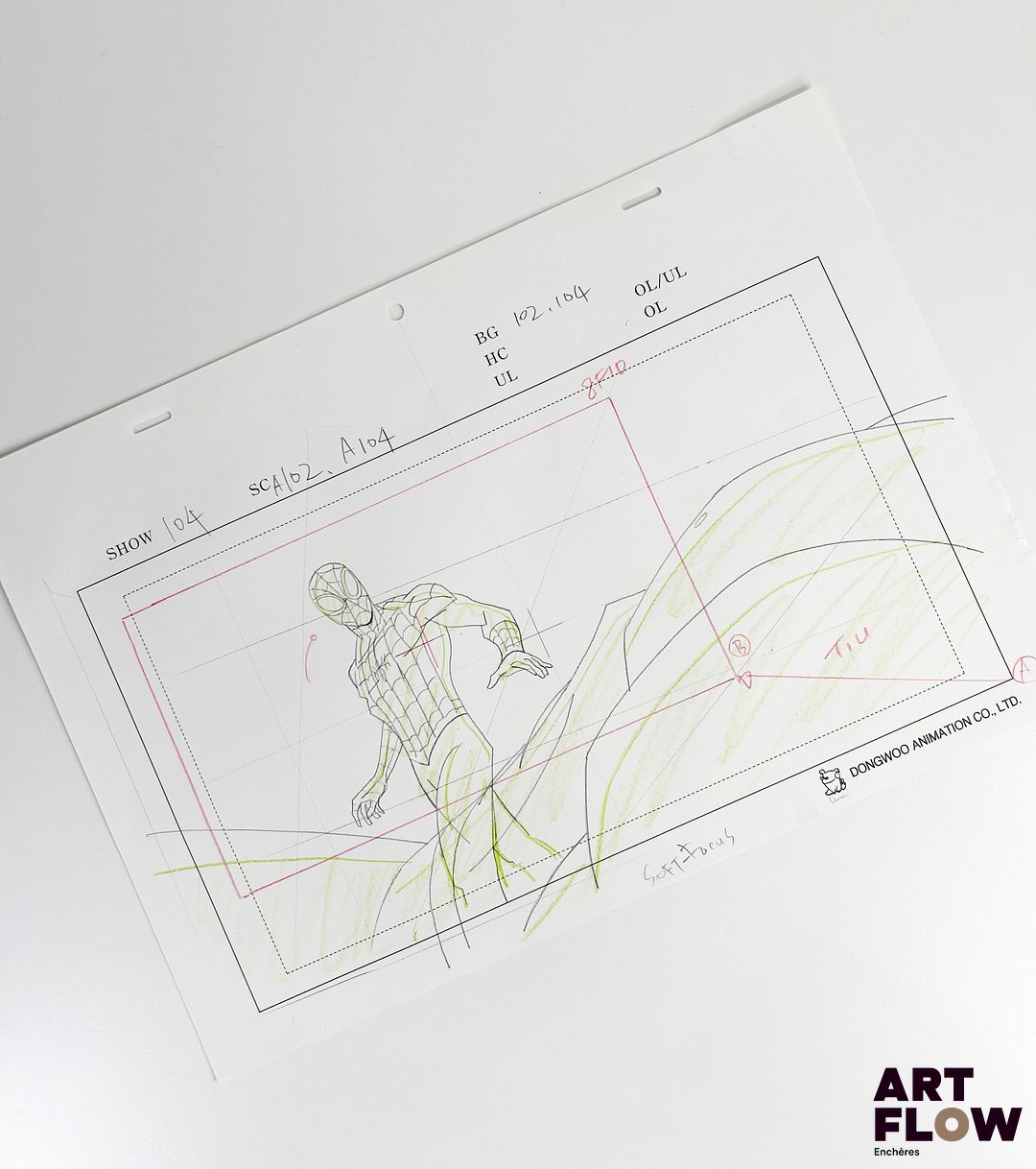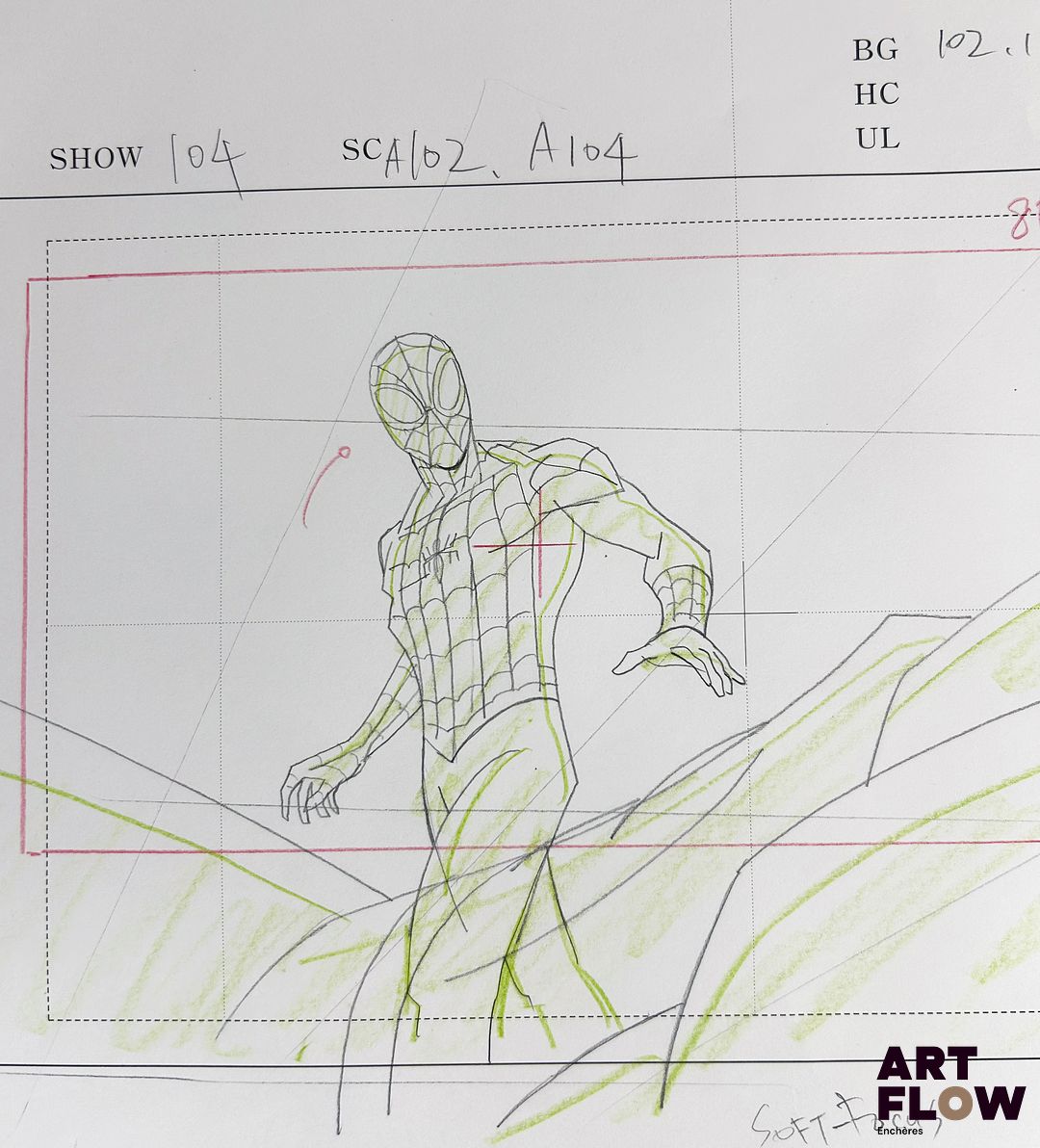 Marvel Comics d’après Steve Ditko Spider-Man / Peter Parker Dessin à la mine de plomb et crayons de couleur représentant Spider-Man debout Personnage de comics américains créé par Marvel Comics « Spider-Man, alias Peter Parker, est un jeune héros agile et courageux. Doté de pouvoirs d’araignée, il protège New York avec ingéniosité et sens des responsabilités. » Dimensions : 24,5 x 35,5 cm