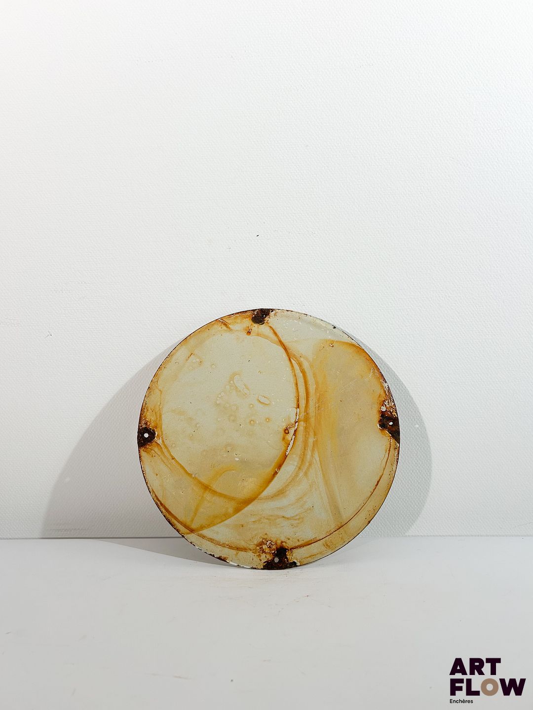 Plaque émaillée Arecanut Toothpaste Diamètre : 23 cm Petits éclats et traces de rouille