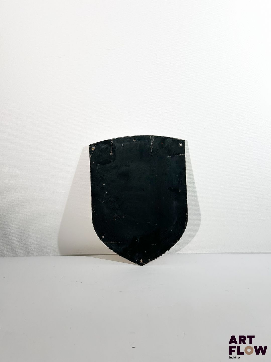 Plaque émaillée d’après Porsche Diamètre : 38 x 27,5 cm Petits éclats et traces de rouille