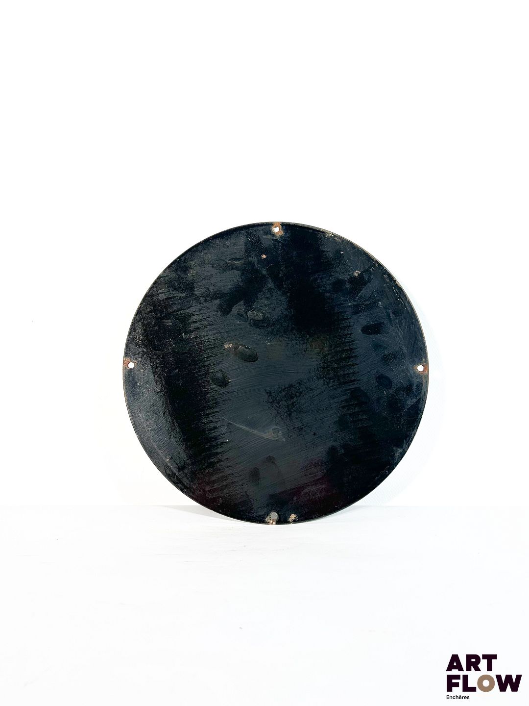 Plaque émaillée ronde d’après Rolex Submariner Diamètre: 30 cm Petits éclats et traces de rouille – moderne