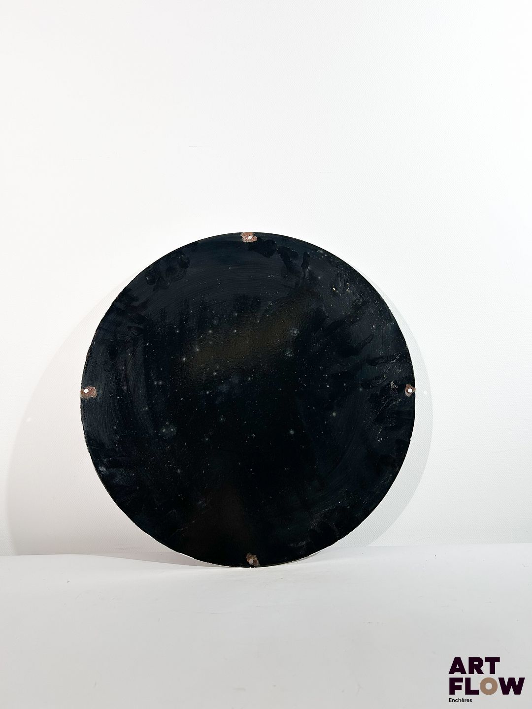 Plaque émaillée ronde d’après Vespa Diamètre : 48 cm Petits éclats et traces de rouille