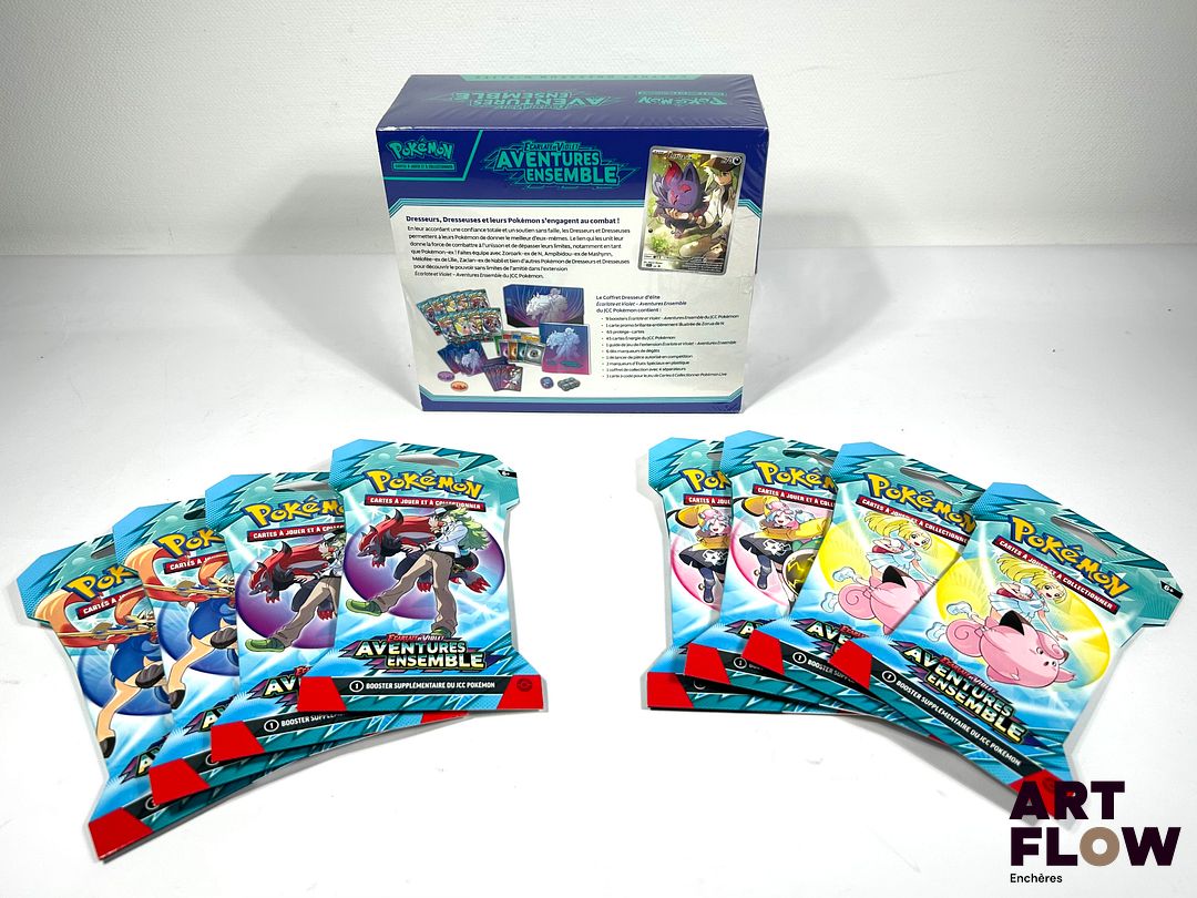 POKEMON Ensemble comprenant : – Coffret dresseur d’élite Écarlate et Violet – Aventures ensemble – Neuf scellé – 2 art sets EV9 – Écarlate et Violet – Aventure ensemble – Neufs