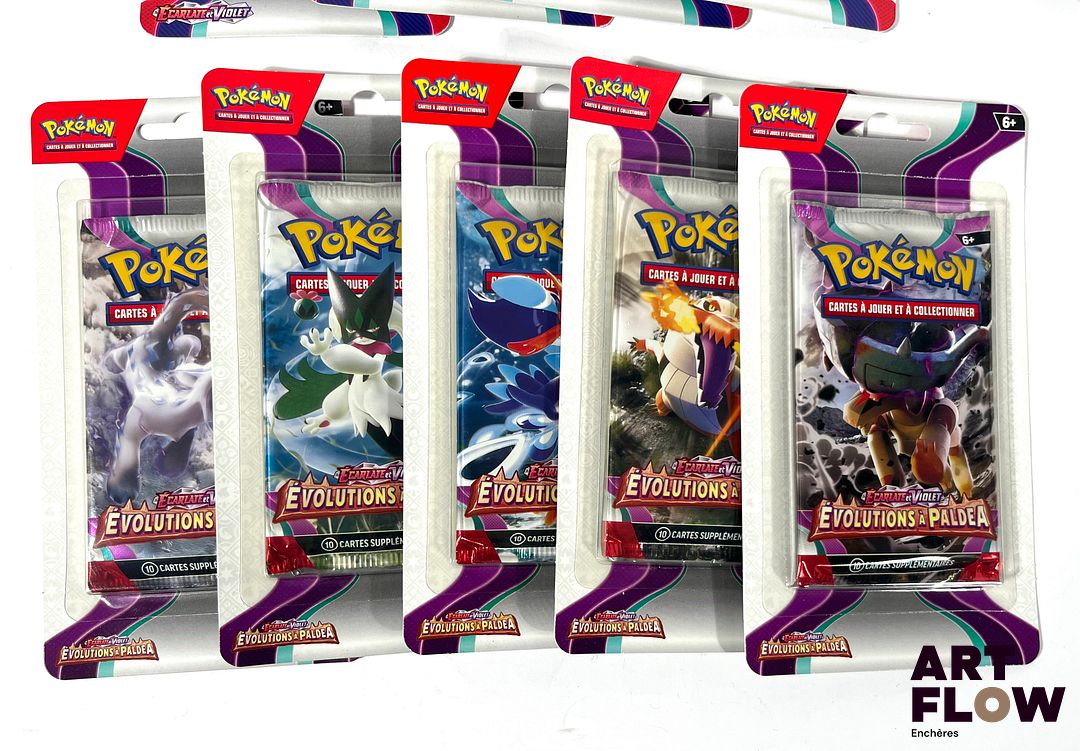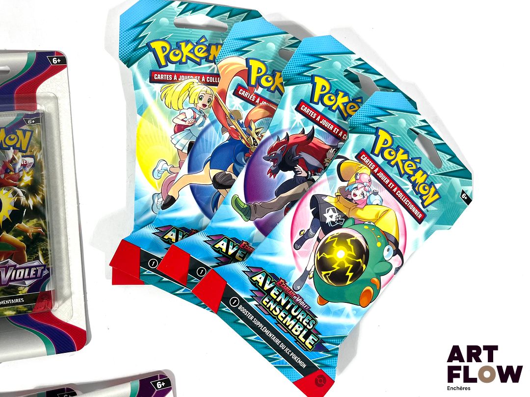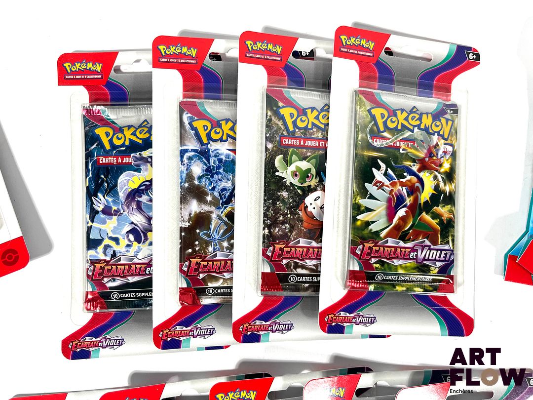 POKEMON Ensemble de 4 art sets comprenant: – Écarlate et Violet – Aventures ensemble – Art Set (4 boosters) – Neufs – Écarlate et Violet – Etincelles déferlantes – Art Set (4 boosters) – Neufs – Écarlate et Violet – Art Set (4 boosters) – Neufs – Écarlate et Violet – Évolution à Paldea – Art Set (5 boosters) – Neufs